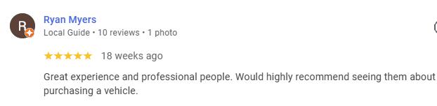 Great experience and professional people. Would highly recommend seeing them about purchasing a vehicle.