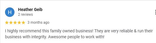 I highly recommend this family owned business! They are very reliable & run their business with integrity. Awesome people to work with!