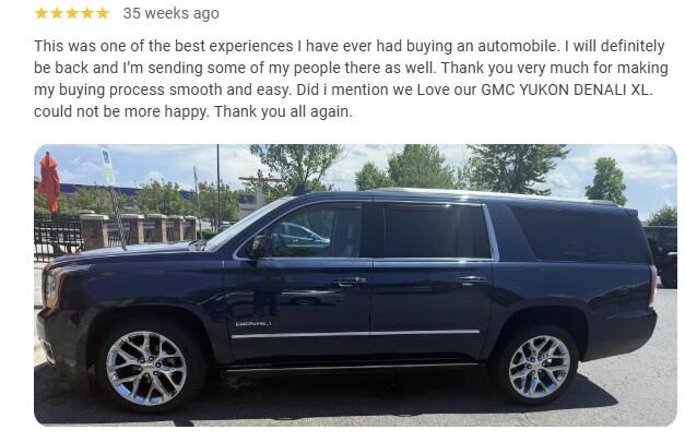 This was one of the best experiences I have ever had buying an automobile. I will definitely be back and I’m sending some of my people there as well. Thank you very much for making my buying process smooth and easy. Did i mention we Love our GMC YUKON DENALI XL. could not be more happy. Thank you all again.