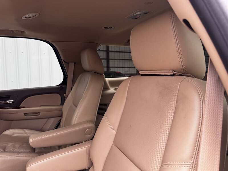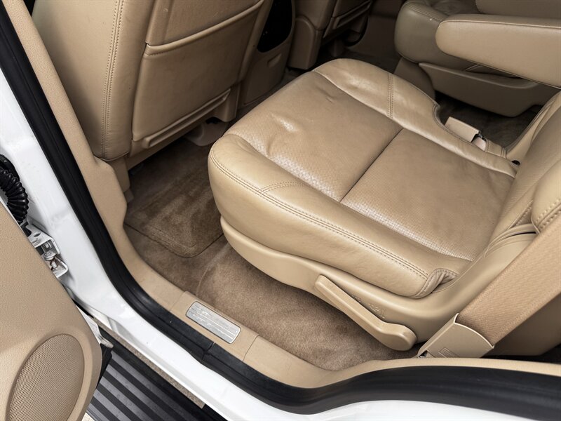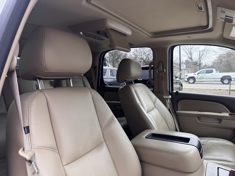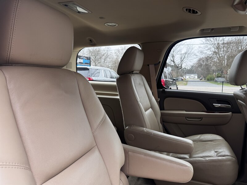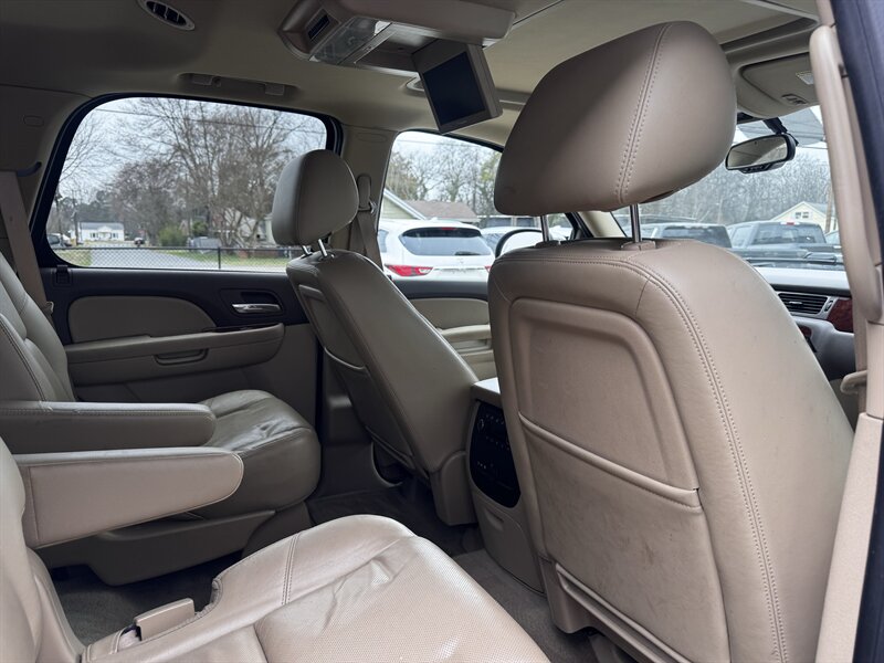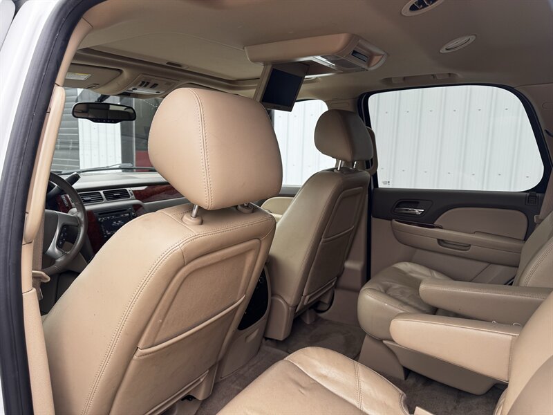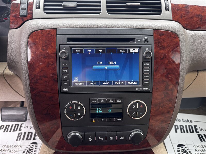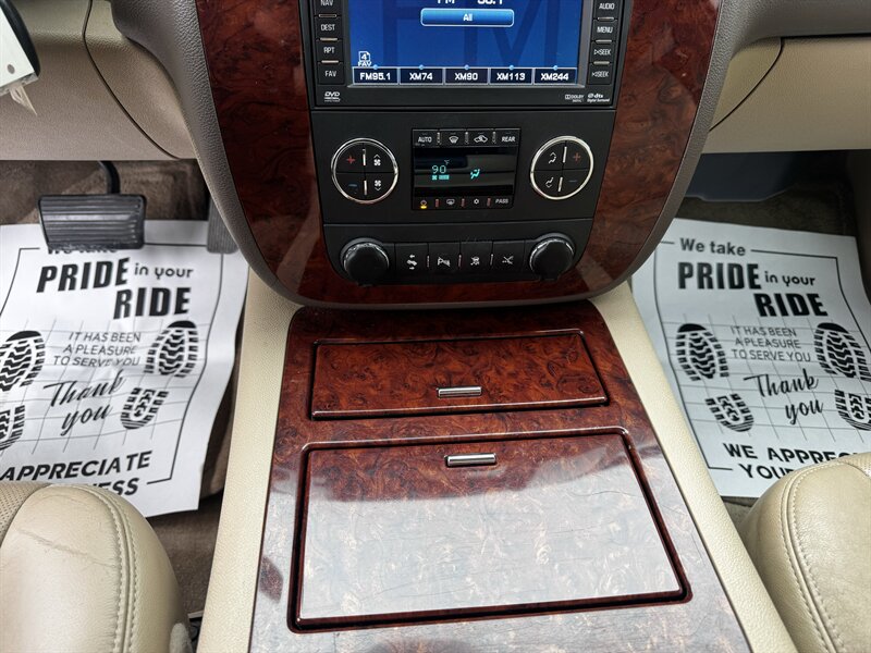 Factory LTZ equipment delivers premium comfort, convenience and safety: leather-appointed seating with power-adjustable front seats and lumbar support, heated front seats, tri-zone automatic climate control, power windows/locks/mirrors and remote keyless entry with remote start, steering-wheel audio and cruise controls, Bluetooth hands-free connectivity and OnStar, a premium audio system with auxiliary/USB and satellite capability, third-row seating with split-folding configuration for added cargo flexibility, polished alloy wheels and chrome exterior accents, plus a full complement of safety systems including ABS, traction and stability control and multiple airbags.