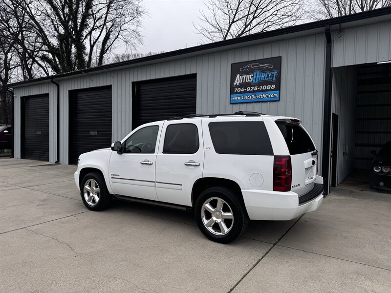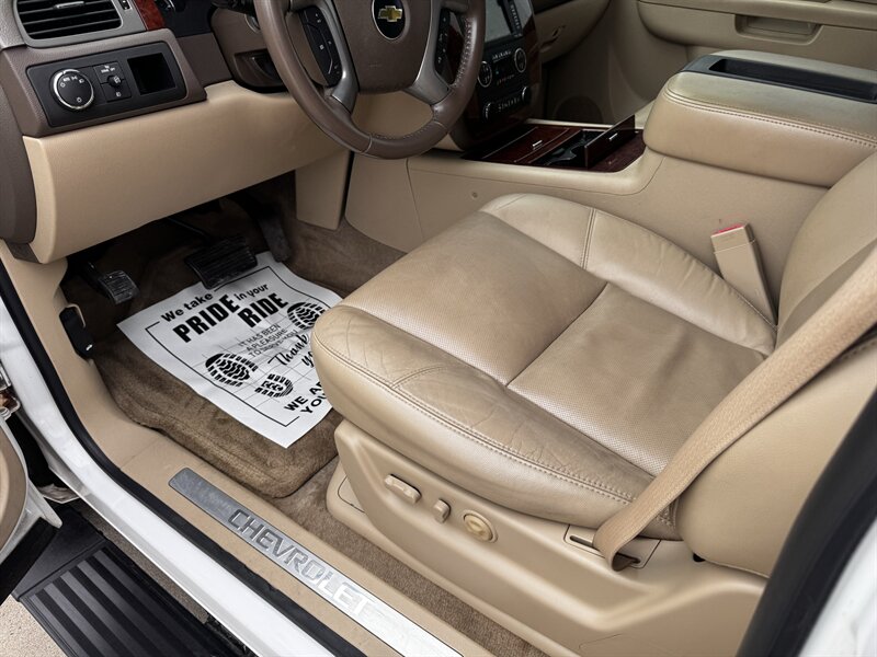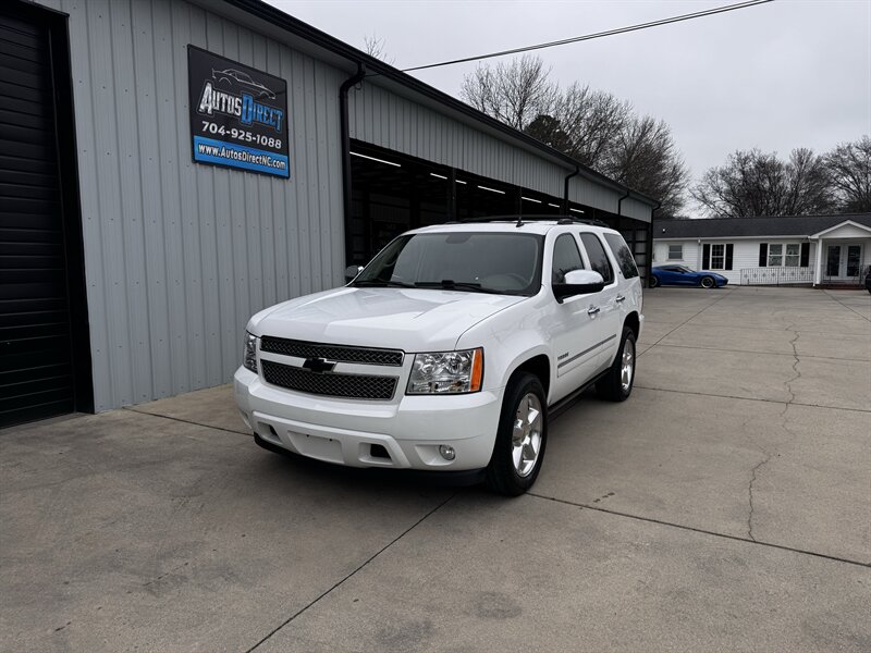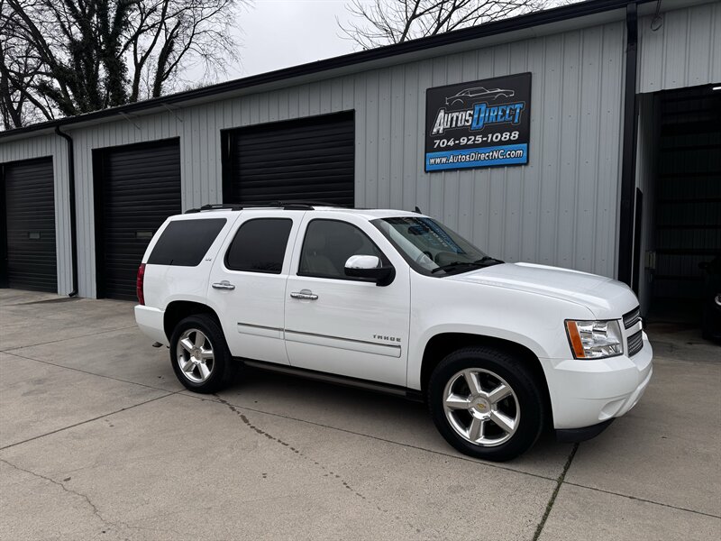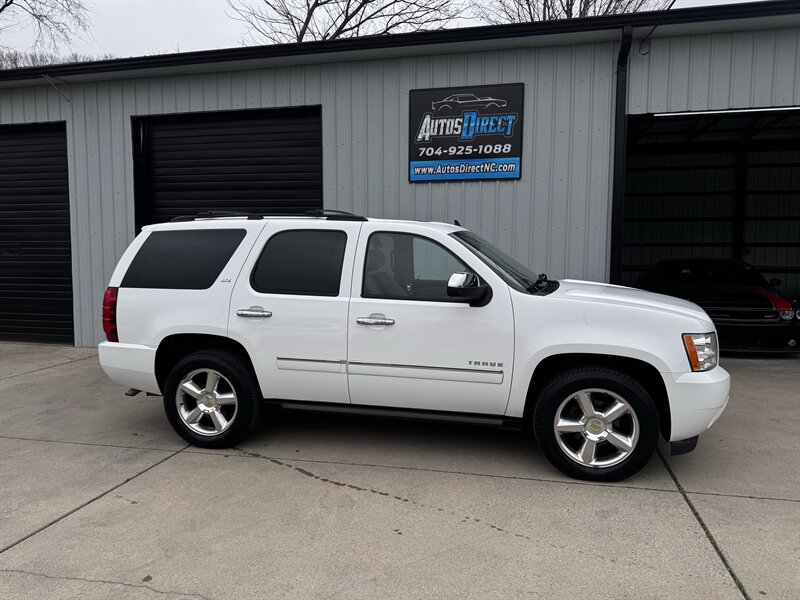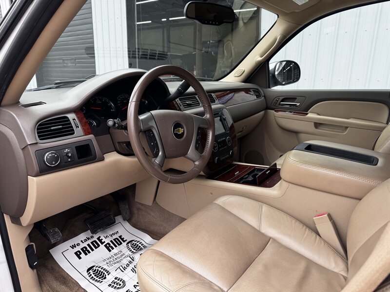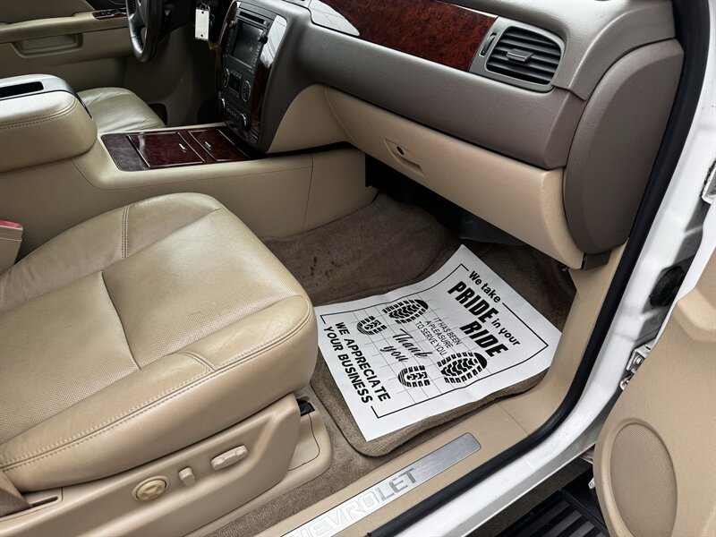 2011 Chevrolet Tahoe LTZ in White Diamond Tricoat with Light Cashmere/Dark Cashmere leather-appointed interior. Powered by a Vortec iron-block 5.3L FlexFuel V8 producing 320 hp and 335 lb-ft of torque. Vehicle is in excellent overall condition with under 101,000 miles (averaging less than 7,000 miles per year).