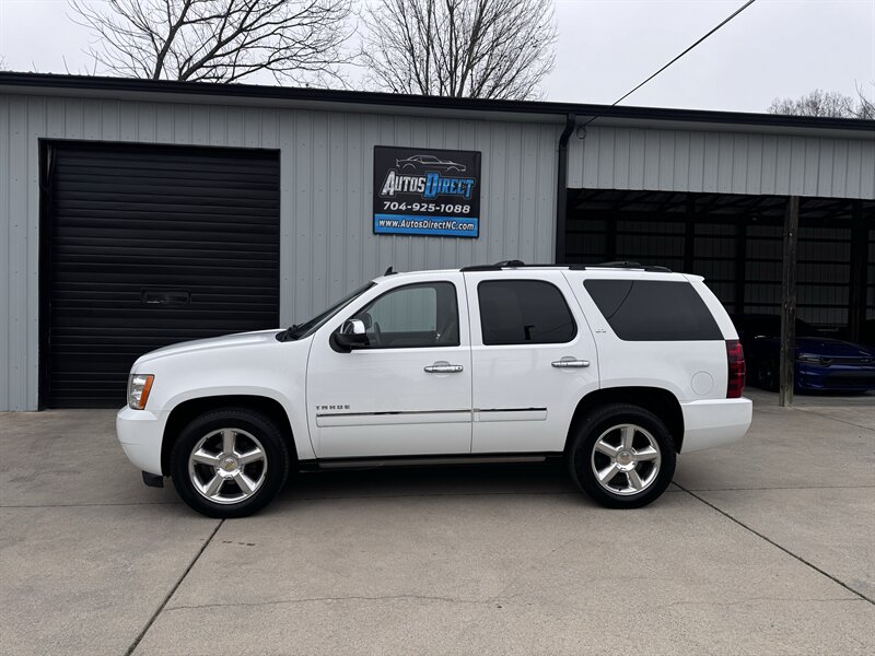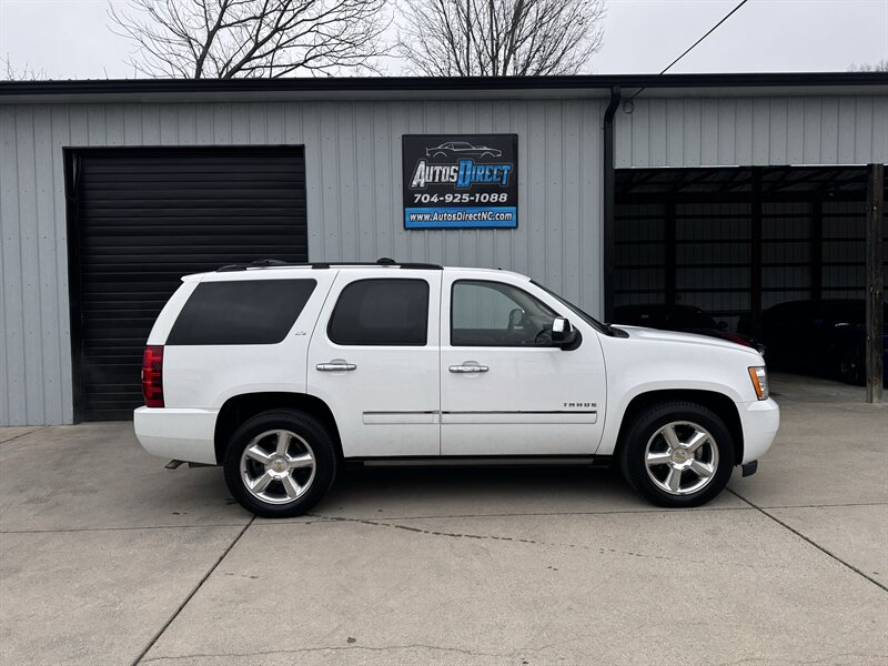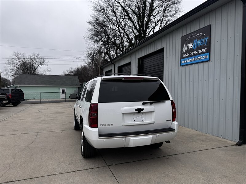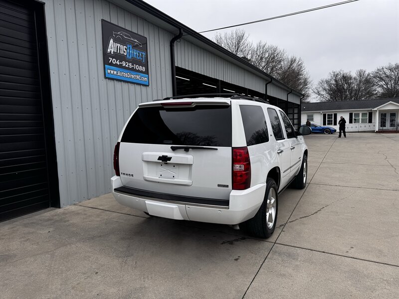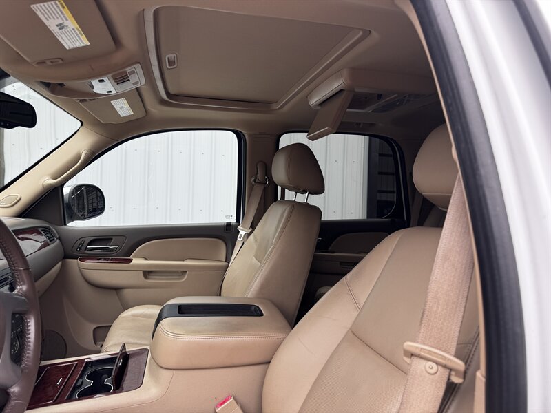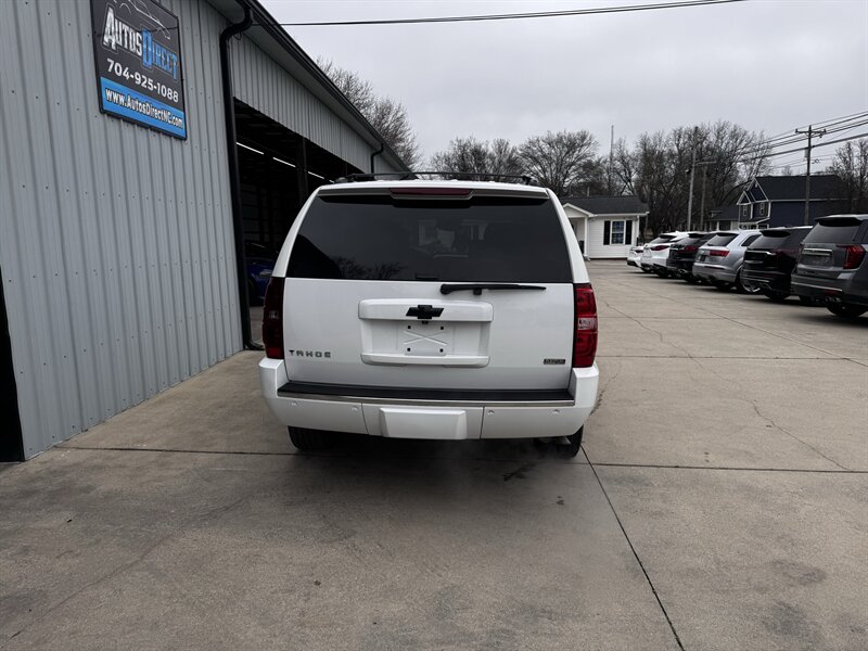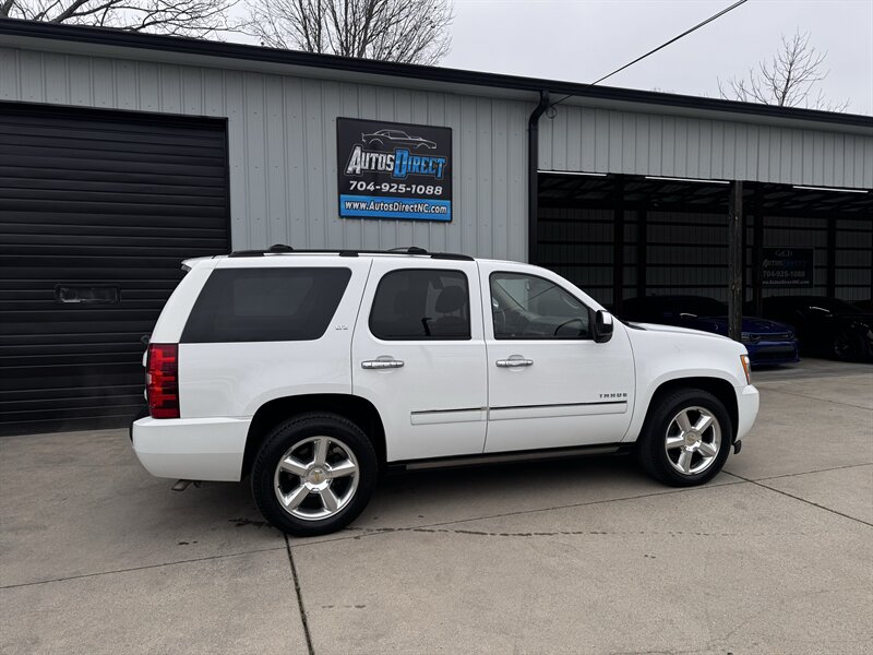 2011 Chevrolet Tahoe LTZ in White Diamond Tricoat with Light Cashmere/Dark Cashmere leather-appointed interior. Powered by a Vortec iron-block 5.3L FlexFuel V8 producing 320 hp and 335 lb-ft of torque. Vehicle is in excellent overall condition with under 101,000 miles (averaging less than 7,000 miles per year).