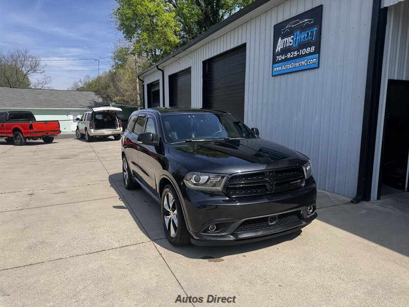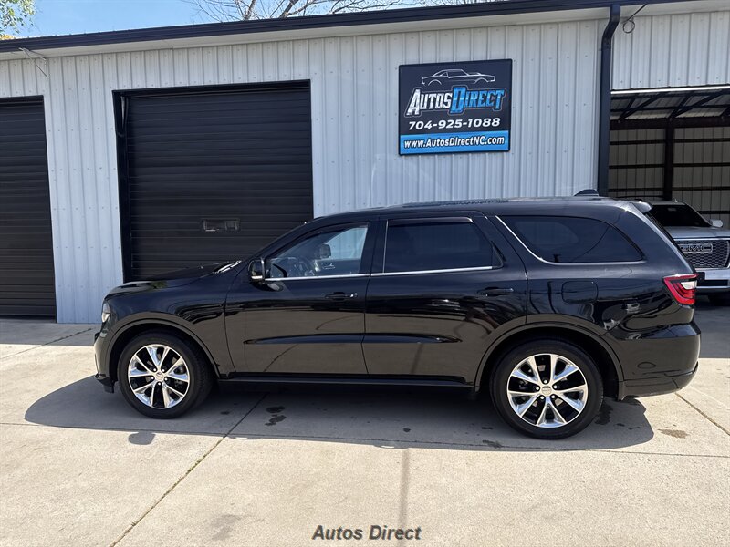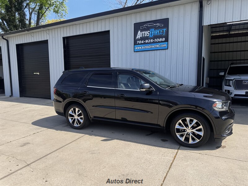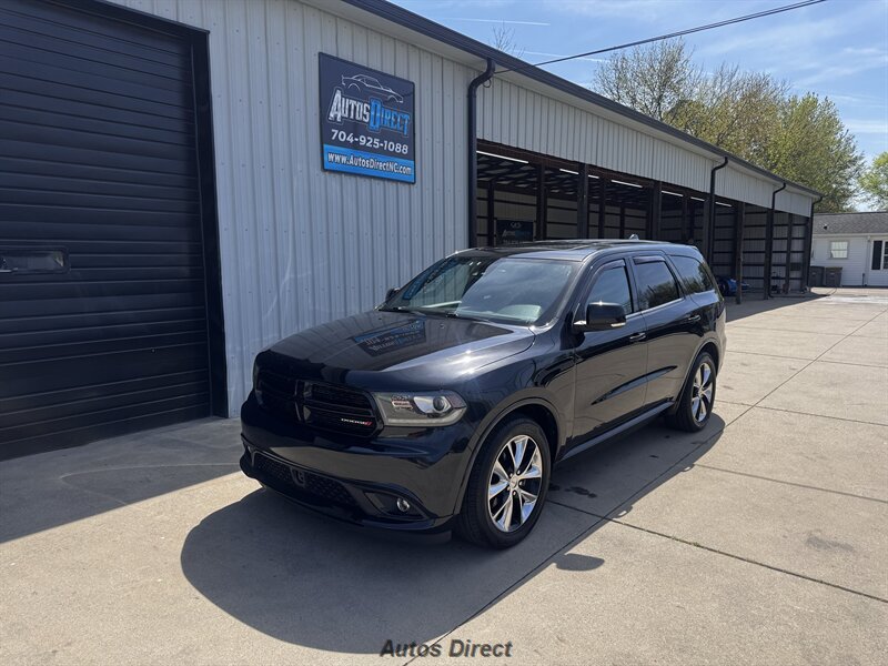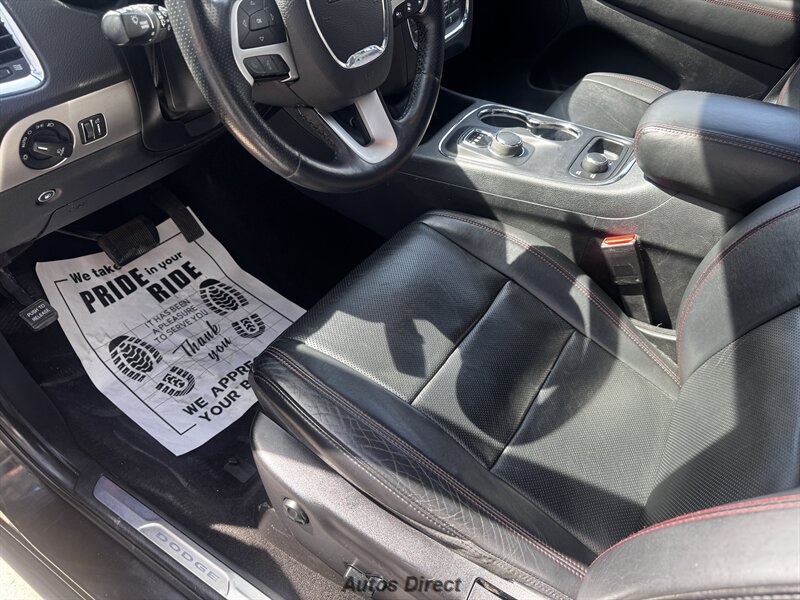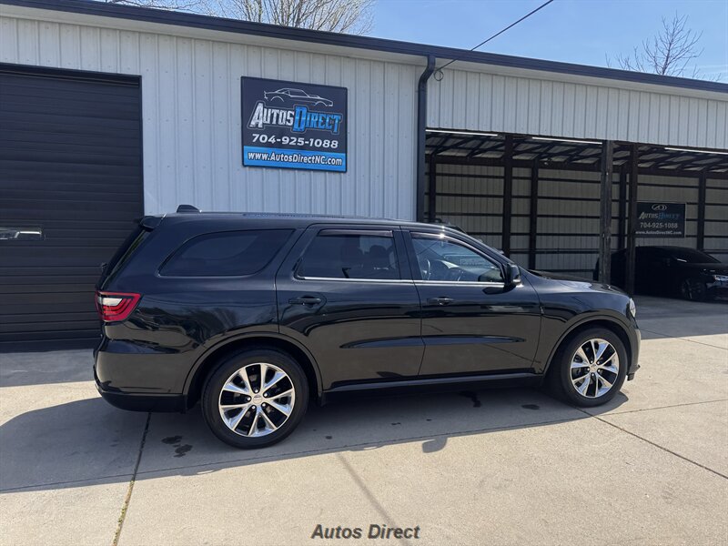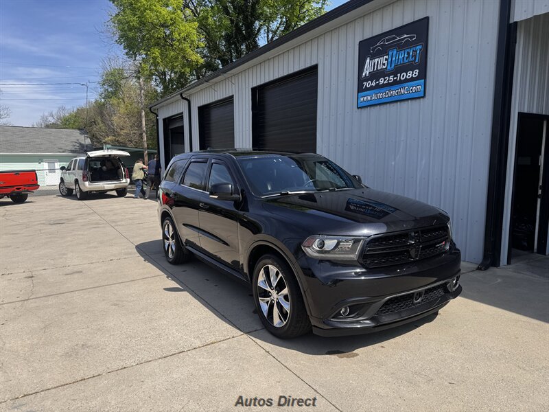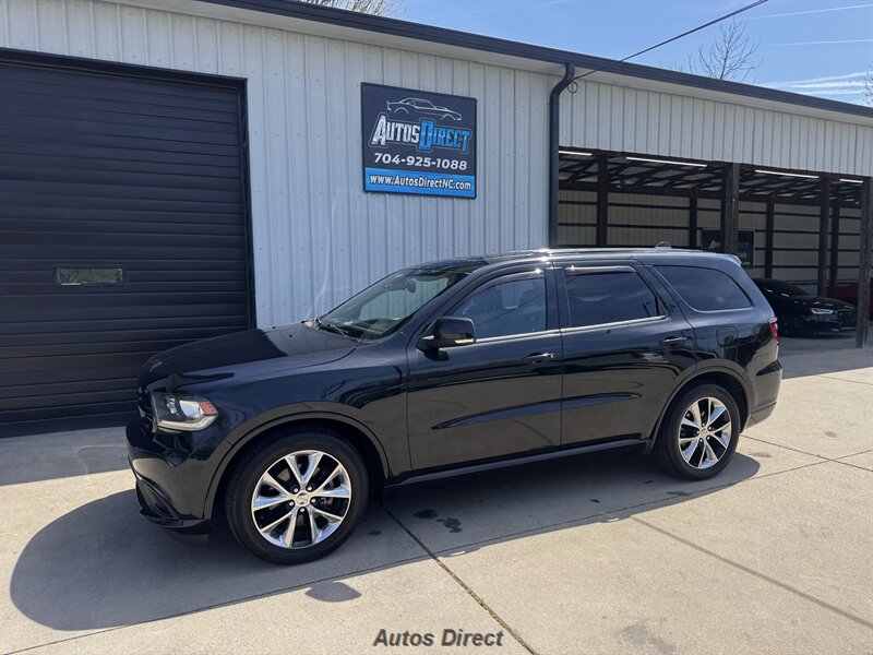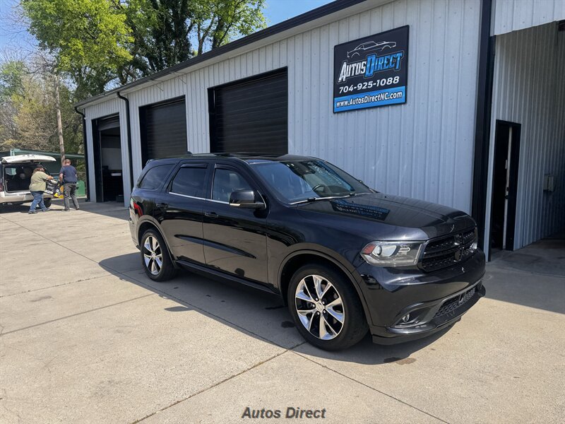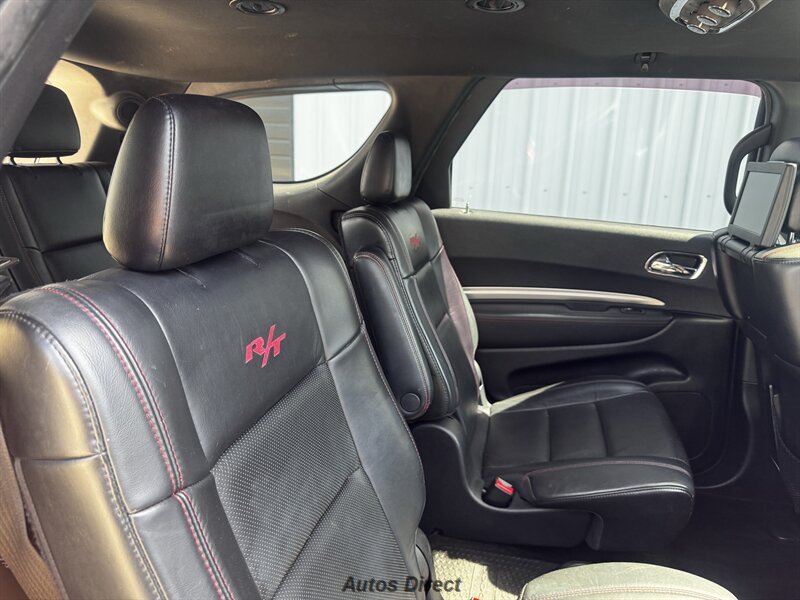 2014 Dodge Durango R/T — HEMI 5.7L V8, 360 hp / 390 ft-lb. Packed with Premium Nappa Leather Group and Technology Group. Options include Single Disc Remote CD Player, 2nd-Row Console w/ Armrest & Storage, Rear DVD Entertainment Center, Power Sunroof, Leather-Trimmed & Luxury Leather-Trimmed Bucket Seats, Second-Row Fold/Tumble Captain’s Chairs, and 20 x 8 in. Polished Aluminum Wheels. Factory equipment delivers serious substance: comprehensive safety systems (ABS, traction control, electronic stability control, multi-stage front and curtain airbags, tire-pressure monitoring), power conveniences (power windows, locks and mirrors, remote keyless entry), cruise control and steering-wheel audio controls, comfortable supportive seating and premium sound — all factory-crafted to work, last and perform. Fuel economy: 14 MPG city / 22 MPG highway. Excellent overall condition!
