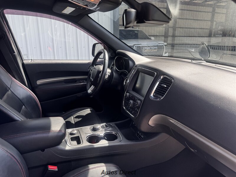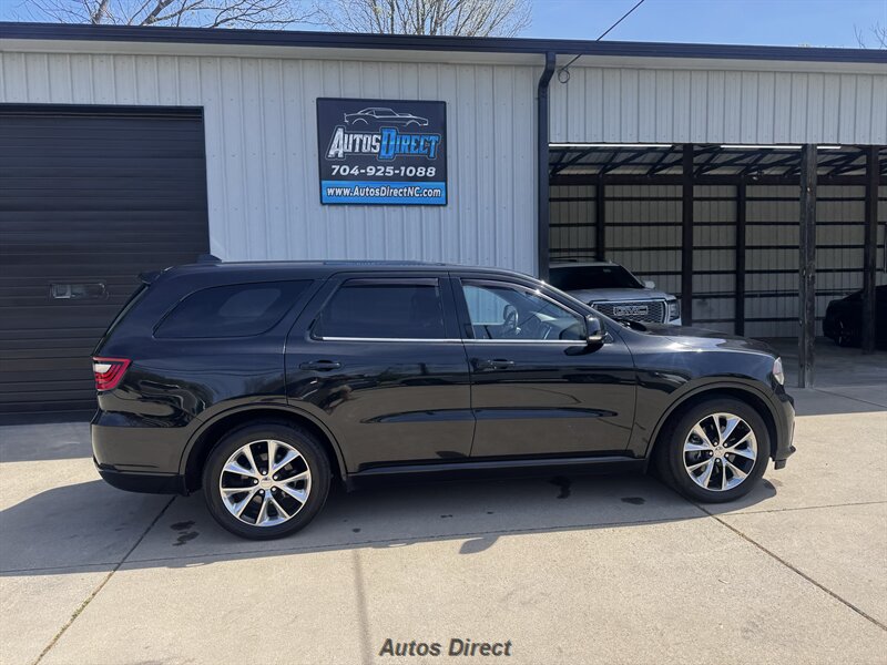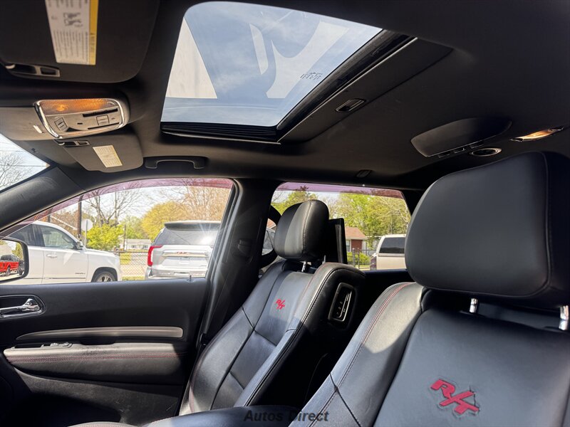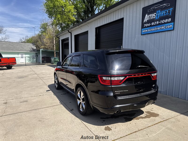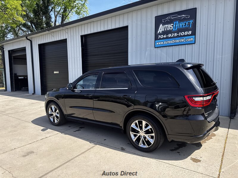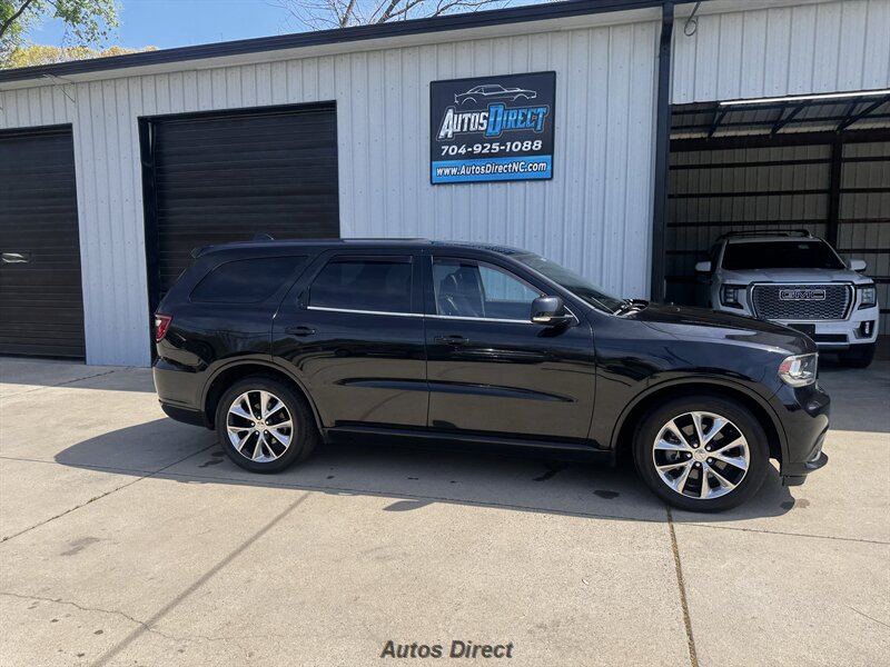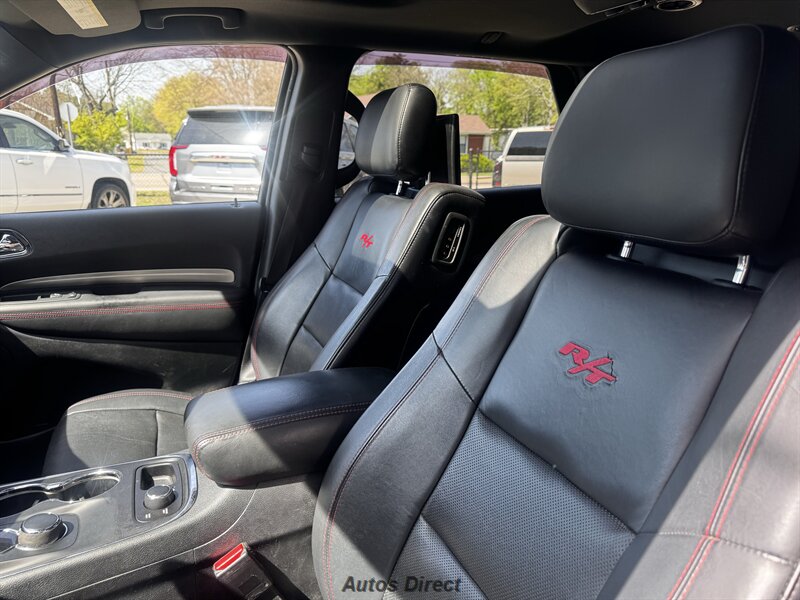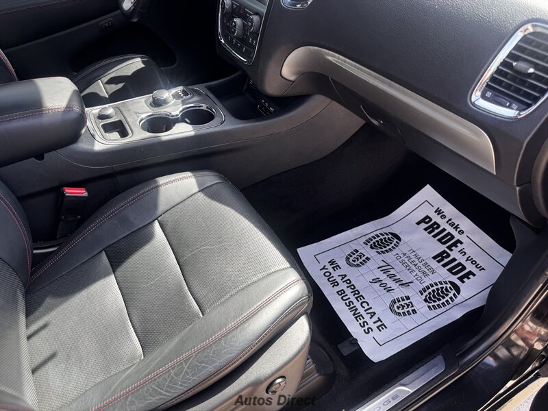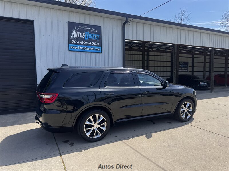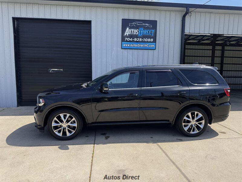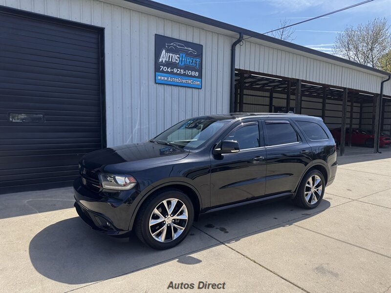 2014 Dodge Durango R/T — HEMI 5.7L V8, 360 hp / 390 ft-lb. Packed with Premium Nappa Leather Group and Technology Group. Options include Single Disc Remote CD Player, 2nd-Row Console w/ Armrest & Storage, Rear DVD Entertainment Center, Power Sunroof, Leather-Trimmed & Luxury Leather-Trimmed Bucket Seats, Second-Row Fold/Tumble Captain’s Chairs, and 20 x 8 in. Polished Aluminum Wheels. Factory equipment delivers serious substance: comprehensive safety systems (ABS, traction control, electronic stability control, multi-stage front and curtain airbags, tire-pressure monitoring), power conveniences (power windows, locks and mirrors, remote keyless entry), cruise control and steering-wheel audio controls, comfortable supportive seating and premium sound — all factory-crafted to work, last and perform. Fuel economy: 14 MPG city / 22 MPG highway. Excellent overall condition!