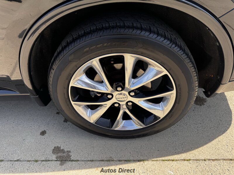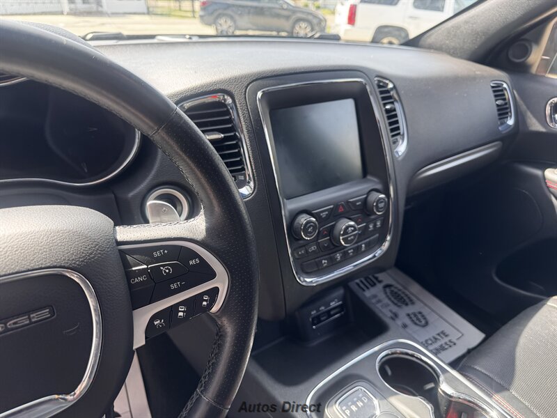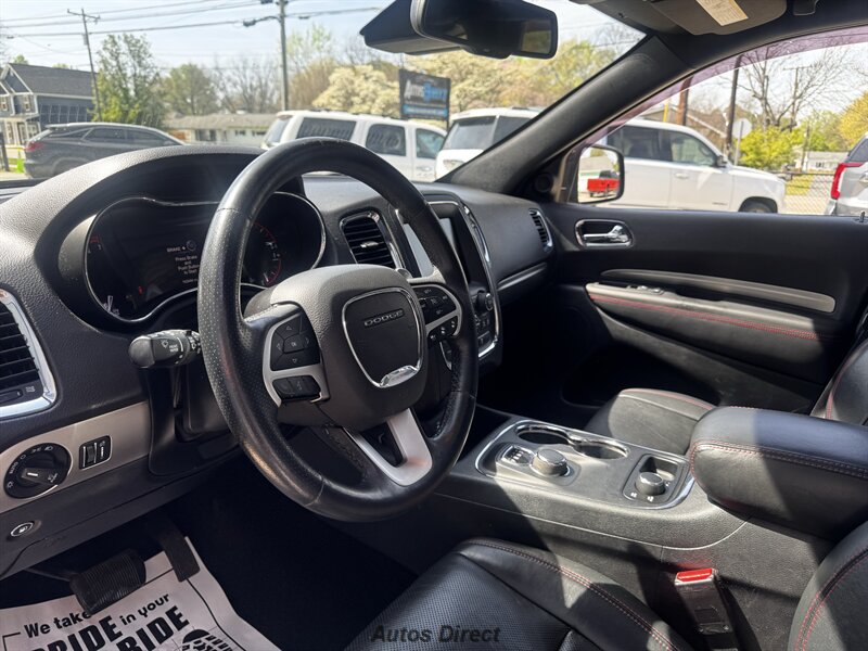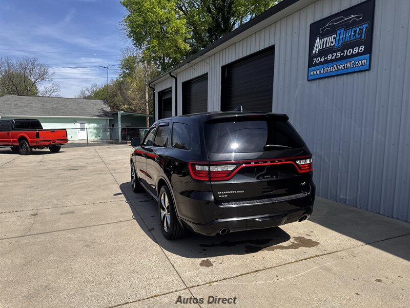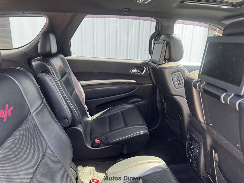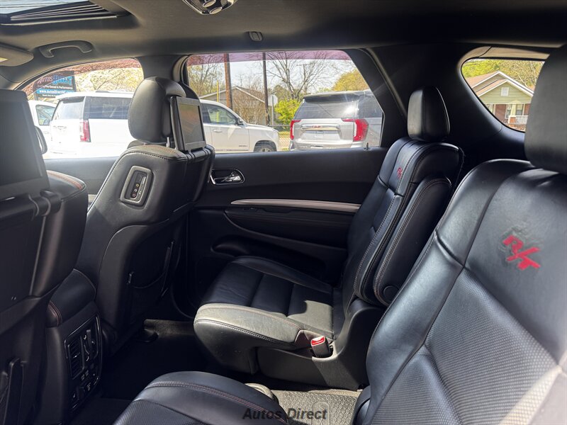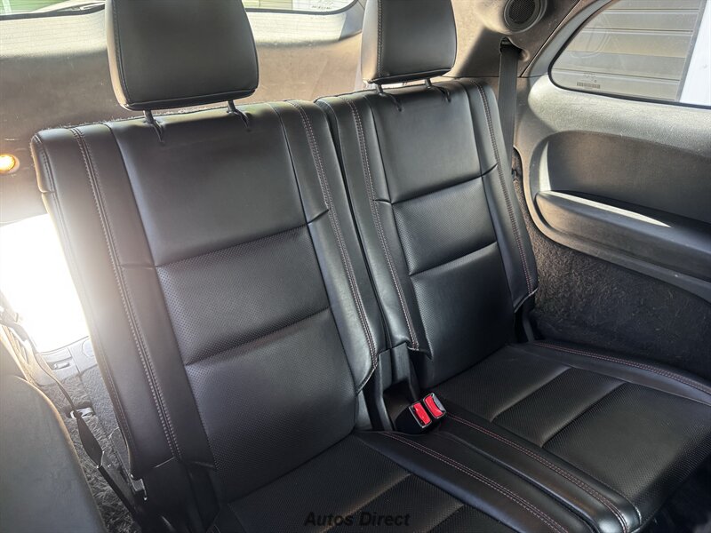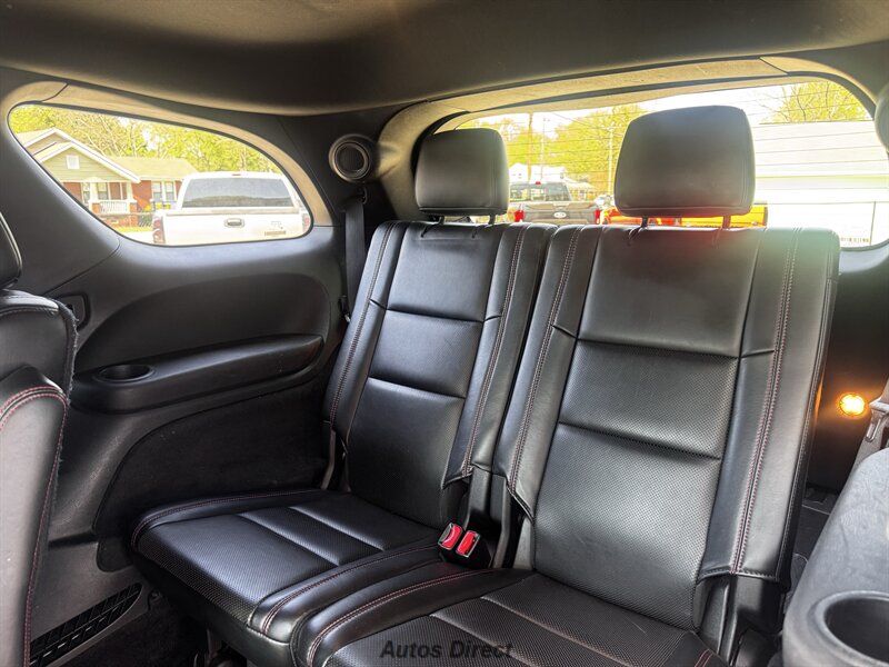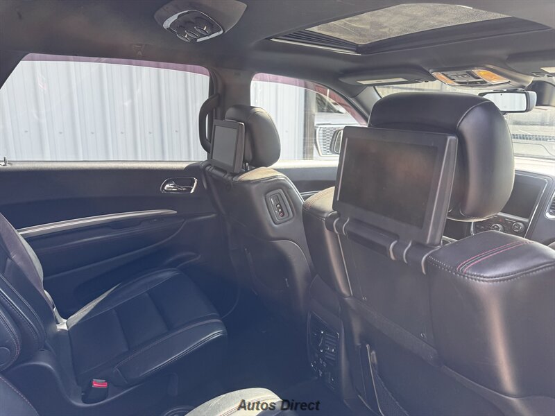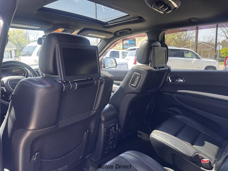 2014 Dodge Durango R/T — HEMI 5.7L V8, 360 hp / 390 ft-lb. Packed with Premium Nappa Leather Group and Technology Group. Options include Single Disc Remote CD Player, 2nd-Row Console w/ Armrest & Storage, Rear DVD Entertainment Center, Power Sunroof, Leather-Trimmed & Luxury Leather-Trimmed Bucket Seats, Second-Row Fold/Tumble Captain’s Chairs, and 20 x 8 in. Polished Aluminum Wheels. Factory equipment delivers serious substance: comprehensive safety systems (ABS, traction control, electronic stability control, multi-stage front and curtain airbags, tire-pressure monitoring), power conveniences (power windows, locks and mirrors, remote keyless entry), cruise control and steering-wheel audio controls, comfortable supportive seating and premium sound — all factory-crafted to work, last and perform. Fuel economy: 14 MPG city / 22 MPG highway. Excellent overall condition!