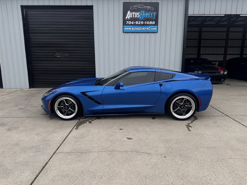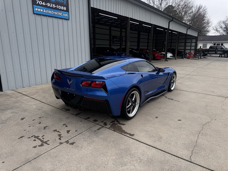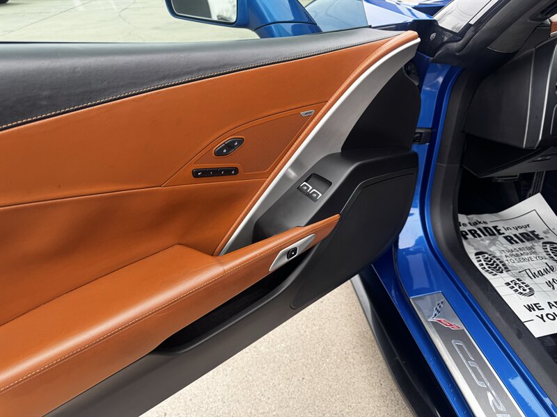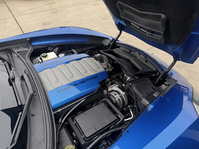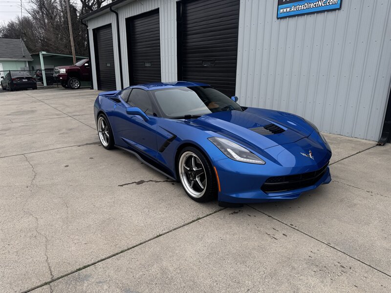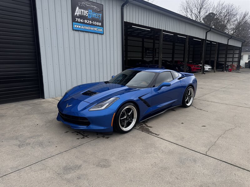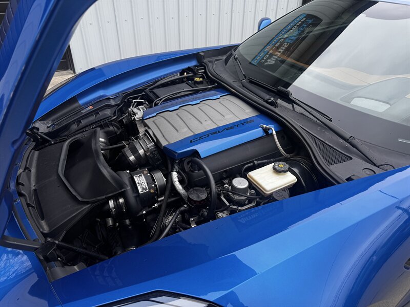 Ready to dominate — This 2015 Procharged Chevrolet Corvette Stingray Z51 3LT in Laguna Blue Tintcoat with Brownstone leather is pure aggression on drag pack wheels, powered by the 6.2L V8 delivering 595 rwhp (dyno sheet available) and 565 lb-ft. Factory Z51 performance hardware includes upgraded suspension, performance brakes, aerodynamic front splitter and rear spoiler, performance exhaust and a performance-oriented differential; the 3LT adds leather-appointed heated and ventilated power sport seats with memory, dual-zone automatic climate control, Bose premium audio with navigation, heads-up display, rearview camera, Homelink/keyless entry and full power conveniences. Below 69,000 miles (averaging <6,000/yr), excellent overall condition, and efficient for its class — 16 MPG city / 29 MPG highway.