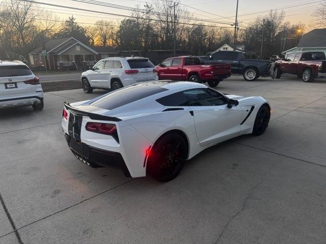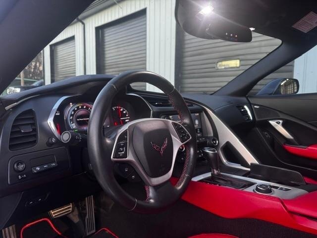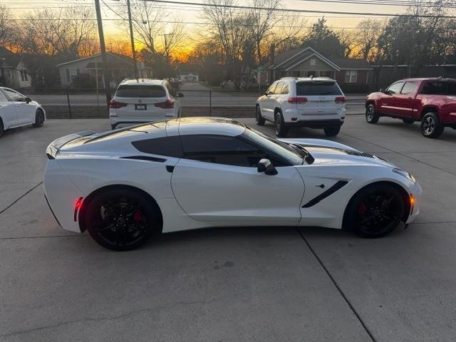 2015 Chevrolet Corvette Stingray Z51 — raw, precise and ready. Powered by the 6.2L LT1 V8 delivering 455 hp and 460 ft-lbs, finished in Arctic White with Adrenaline Red interior. Factory equipment includes a lightweight aluminum frame and composite body, four-wheel independent suspension with the Driver Mode Selector (Tour/Sport/Track/Weather), ABS with traction and stability control, power heated leather seats, dual-zone automatic climate control, keyless access with push-button start, Bluetooth/steering wheel controls and a premium audio system. This car also comes with Chevrolet MyLink Radio w/ Navigation, Stingray Exterior and Logo Packages, plus Red Calipers, Carbon Flash full-length dual racing stripe, Competition Sport bucket seats, Custom sill plates w/ Stingray logo, floor mats, remote start, Z51 Magnetic Selective Ride Control suspension and black Z51 style aluminum wheels. Under 75,000 miles (avg <7,000/yr), excellent condition, clean CARFAX — Don’t wait.