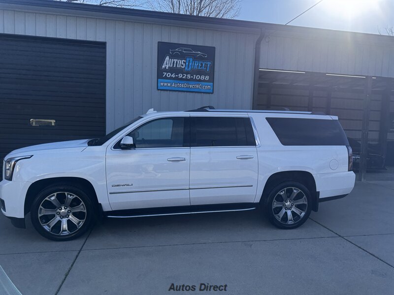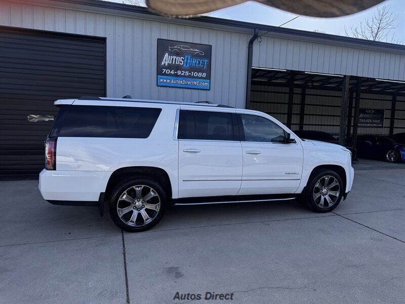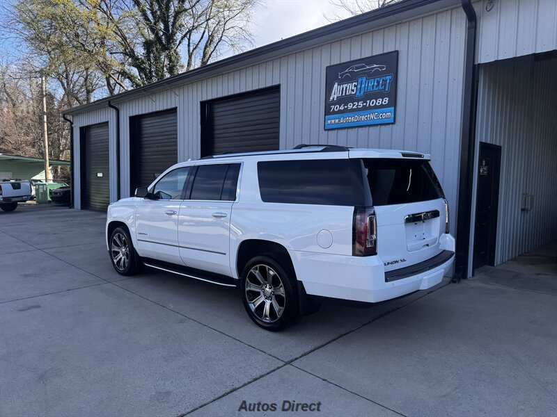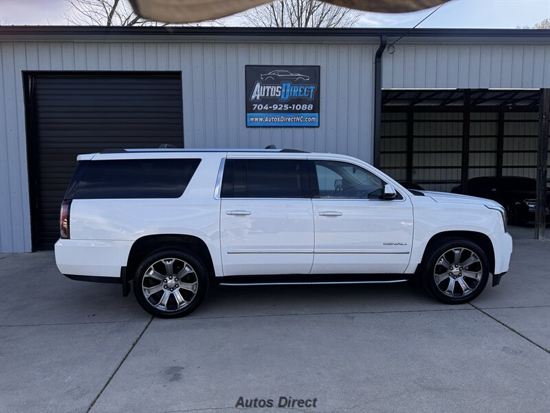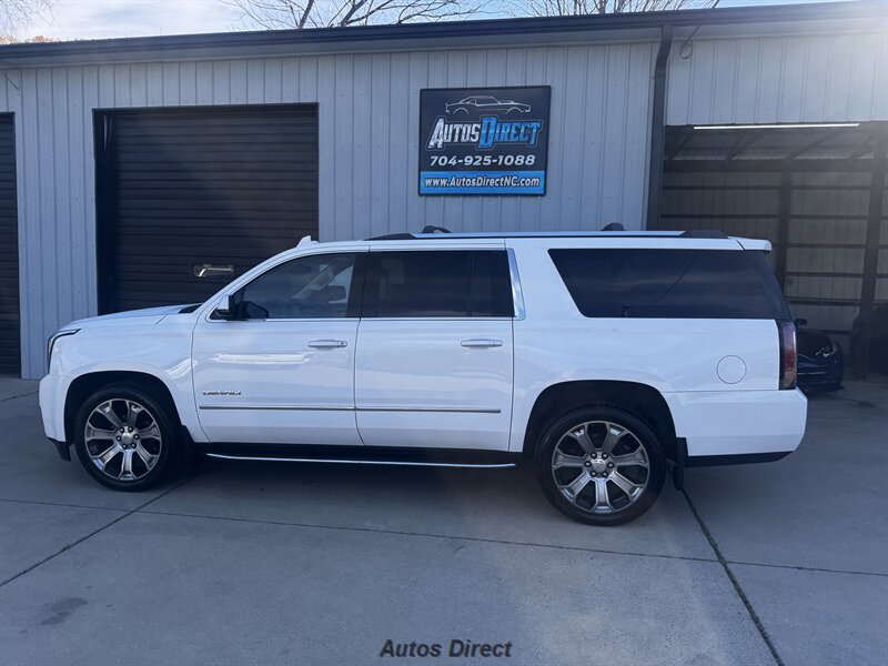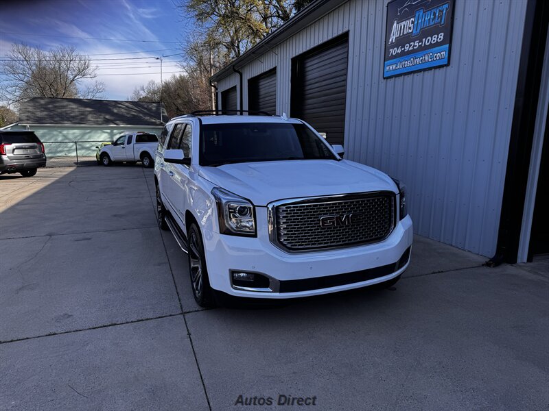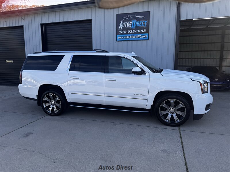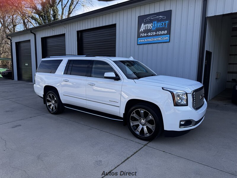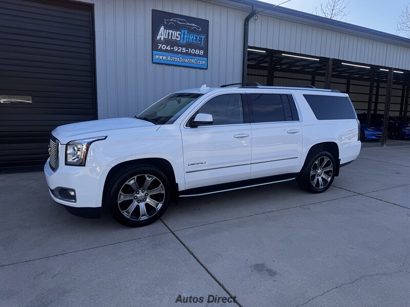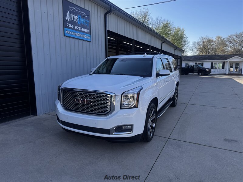 2017 GMC Yukon XL Denali in Summit White with Cocoa/Shale leather-appointed interior, powered by the robust EcoTec3 6.2L V8 (420 hp, 460 lb-ft). Factory-equipped features include the signature Denali chrome grille and premium alloy wheels, HID projector headlamps with LED daytime running lamps, power liftgate and roof rails, and Magnetic Ride Control suspension for refined on-road comfort. Inside you’ll find heated and ventilated front seats, heated second-row seating, a heated leather-wrapped steering wheel, power-adjustable front seats with memory, tri-zone automatic climate control, third-row seating, and a full infotainment suite with touchscreen, Bluetooth, USB connectivity and premium audio; safety and control are handled by ABS, StabiliTrak, traction control and multiple airbags. This Yukon XL achieves an EPA-estimated 14 MPG city / 20 MPG highway, is in excellent overall condition and comes with a clean CARFAX.