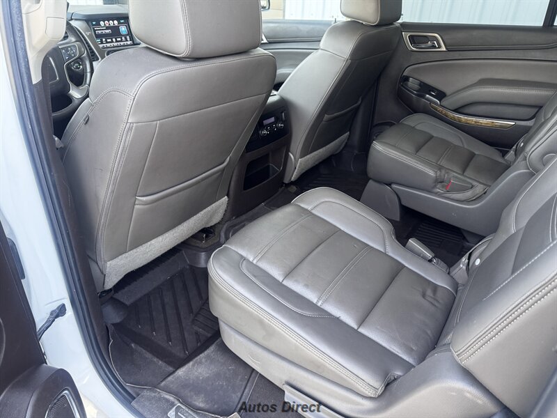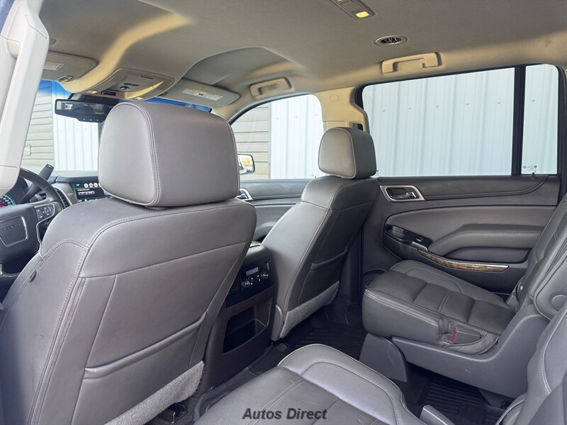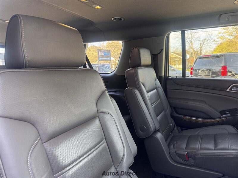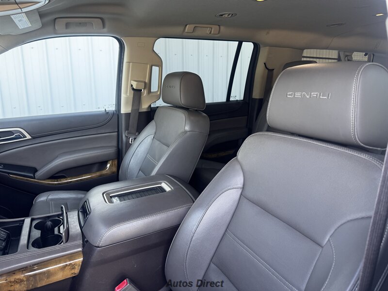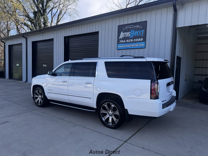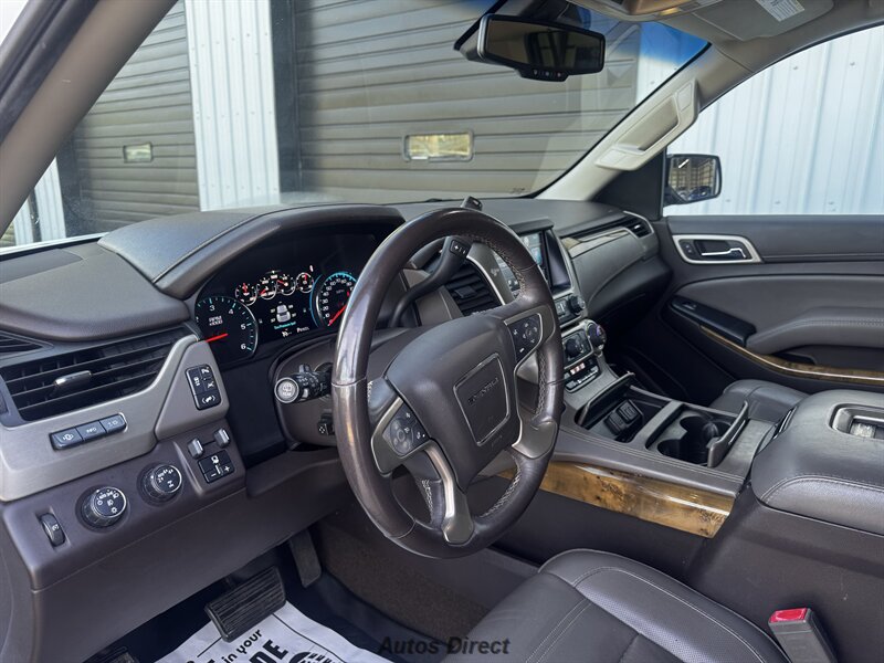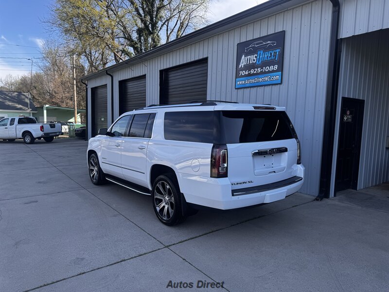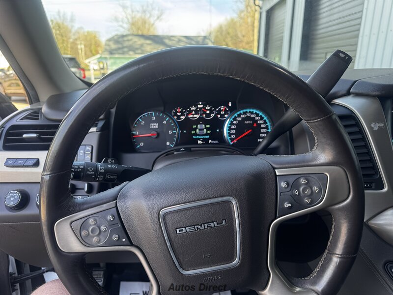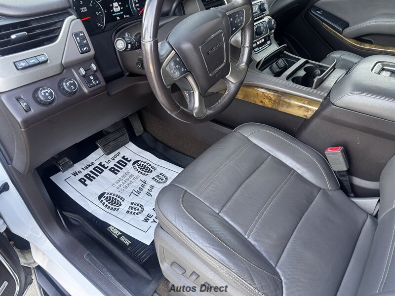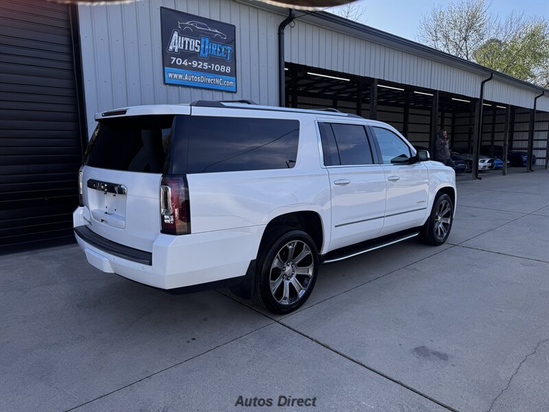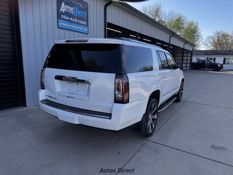 2017 GMC Yukon XL Denali in Summit White with Cocoa/Shale leather-appointed interior, powered by the robust EcoTec3 6.2L V8 (420 hp, 460 lb-ft). Factory-equipped features include the signature Denali chrome grille and premium alloy wheels, HID projector headlamps with LED daytime running lamps, power liftgate and roof rails, and Magnetic Ride Control suspension for refined on-road comfort. Inside you’ll find heated and ventilated front seats, heated second-row seating, a heated leather-wrapped steering wheel, power-adjustable front seats with memory, tri-zone automatic climate control, third-row seating, and a full infotainment suite with touchscreen, Bluetooth, USB connectivity and premium audio; safety and control are handled by ABS, StabiliTrak, traction control and multiple airbags. This Yukon XL achieves an EPA-estimated 14 MPG city / 20 MPG highway, is in excellent overall condition and comes with a clean CARFAX.