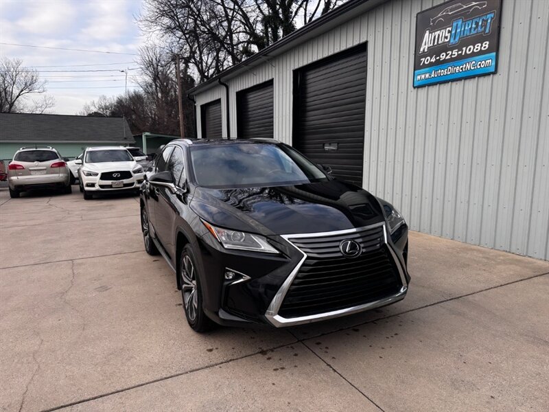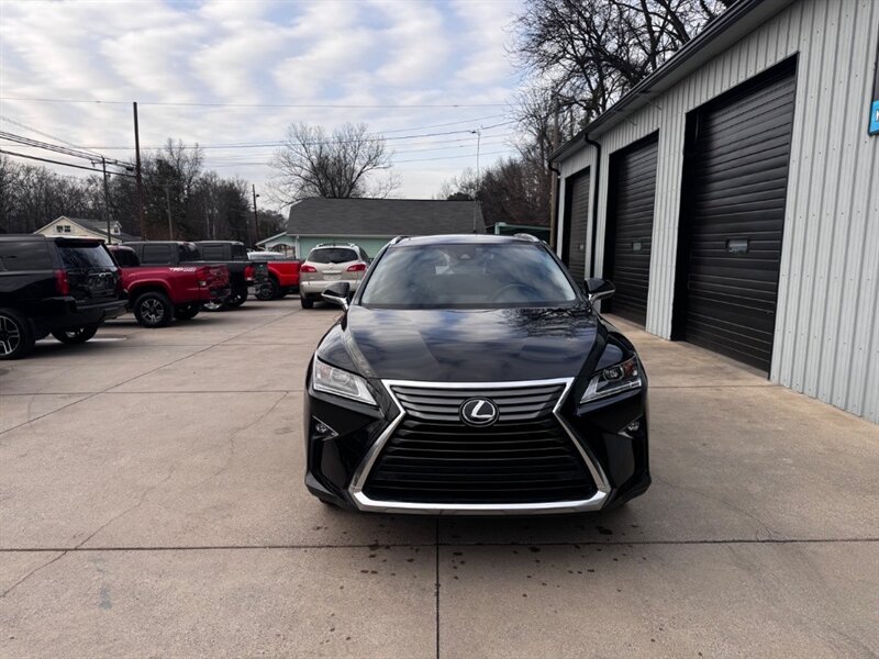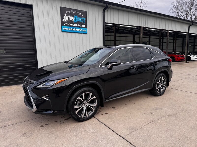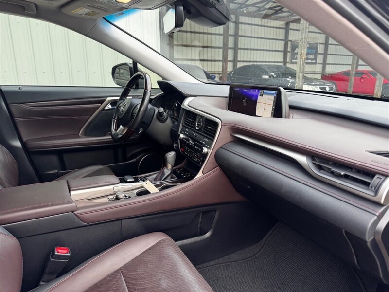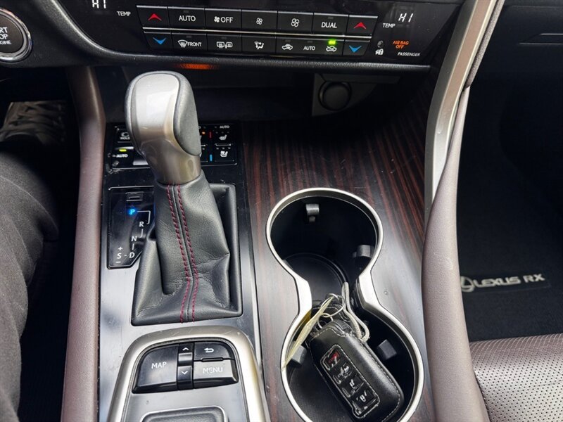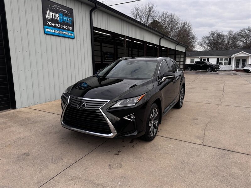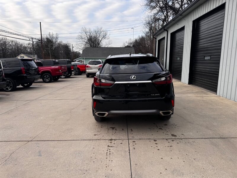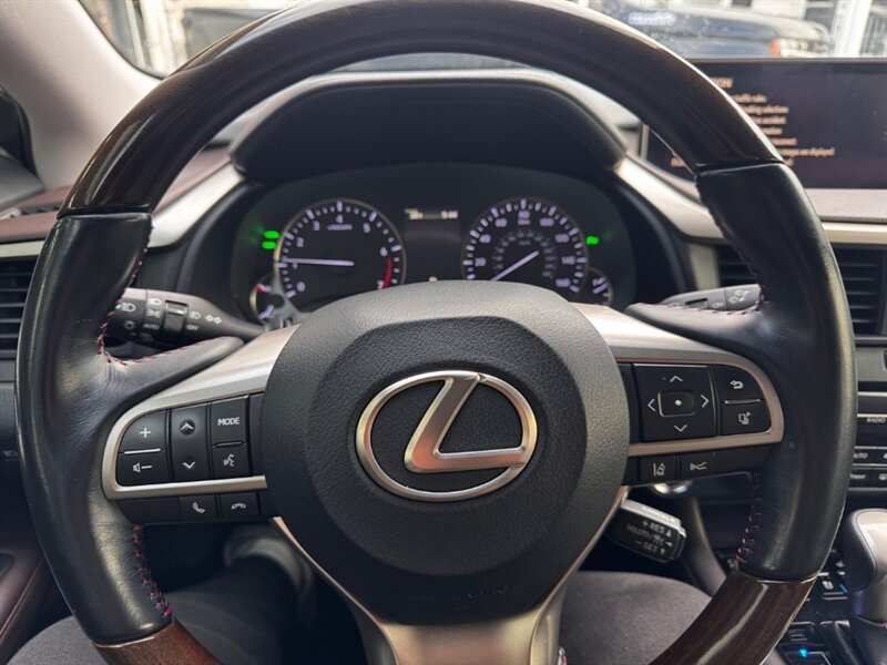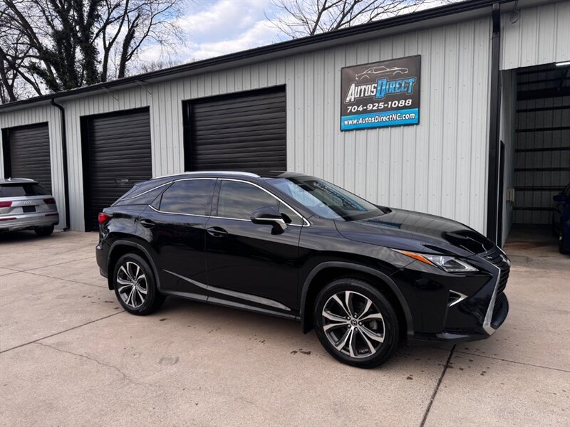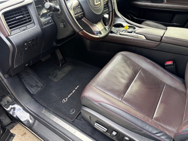2018 Lexus RX 350 in Obsidian with Noble Brown leather interior and Matte Linear Dark Mocha wood trim. Powered by a 3.5L V6 producing 295 hp and 267 lb-ft of torque paired with an 8-speed automatic transmission. Factory equipment includes LED headlights and daytime running lights, 18" alloy wheels, power liftgate, smart key with push-button start, dual-zone automatic climate control, power-adjustable front seats with lumbar support, leather-trimmed seating, Matte Linear Dark Mocha wood interior trim, 8" Lexus multimedia display with Bluetooth/USB connectivity, backup camera, SiriusXM/Lexus Enform trial, cruise control, ABS with traction and stability control, multiple airbags and tire pressure monitoring. Rated at 19 MPG city / 26 MPG highway; vehicle is in excellent overall condition.