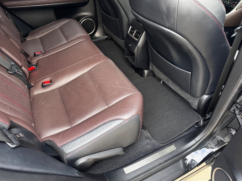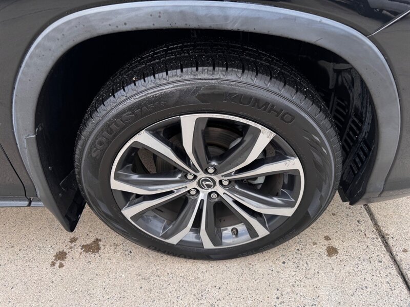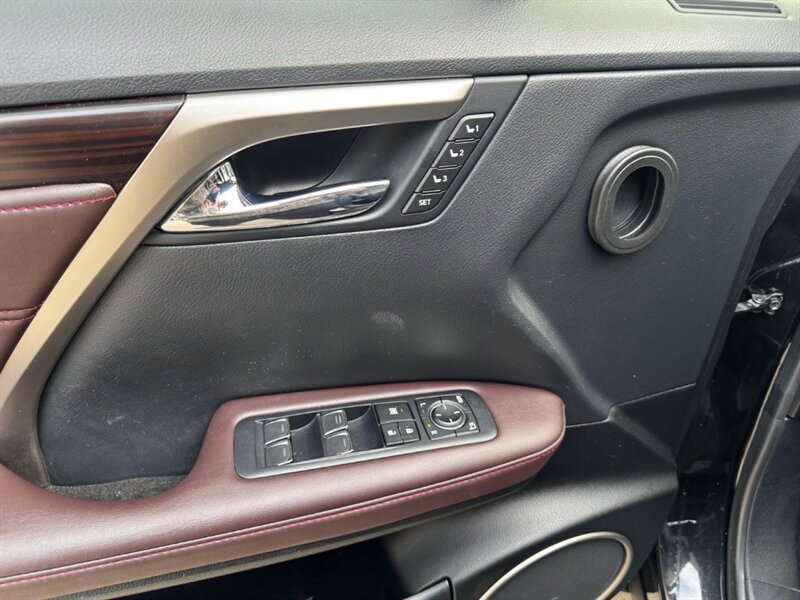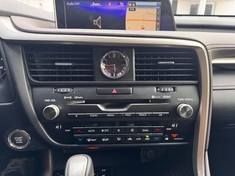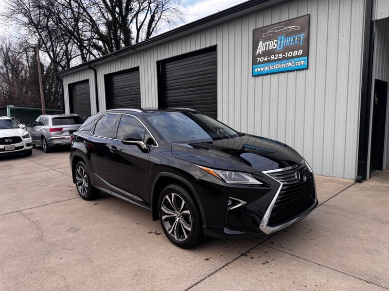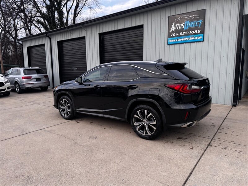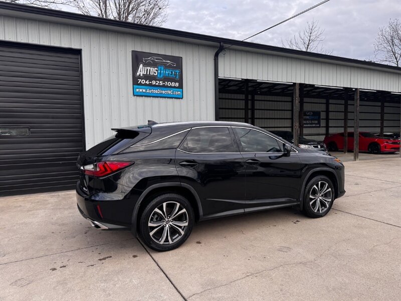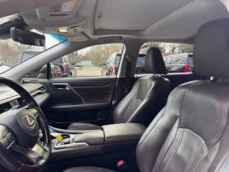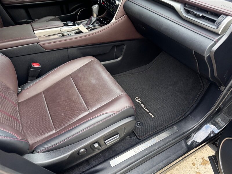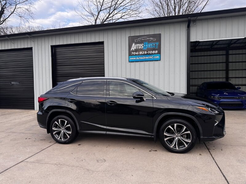 2018 Lexus RX 350 in Obsidian with Noble Brown leather interior and Matte Linear Dark Mocha wood trim. Powered by a 3.5L V6 producing 295 hp and 267 lb-ft of torque paired with an 8-speed automatic transmission. Factory equipment includes LED headlights and daytime running lights, 18" alloy wheels, power liftgate, smart key with push-button start, dual-zone automatic climate control, power-adjustable front seats with lumbar support, leather-trimmed seating, Matte Linear Dark Mocha wood interior trim, 8" Lexus multimedia display with Bluetooth/USB connectivity, backup camera, SiriusXM/Lexus Enform trial, cruise control, ABS with traction and stability control, multiple airbags and tire pressure monitoring. Rated at 19 MPG city / 26 MPG highway; vehicle is in excellent overall condition.