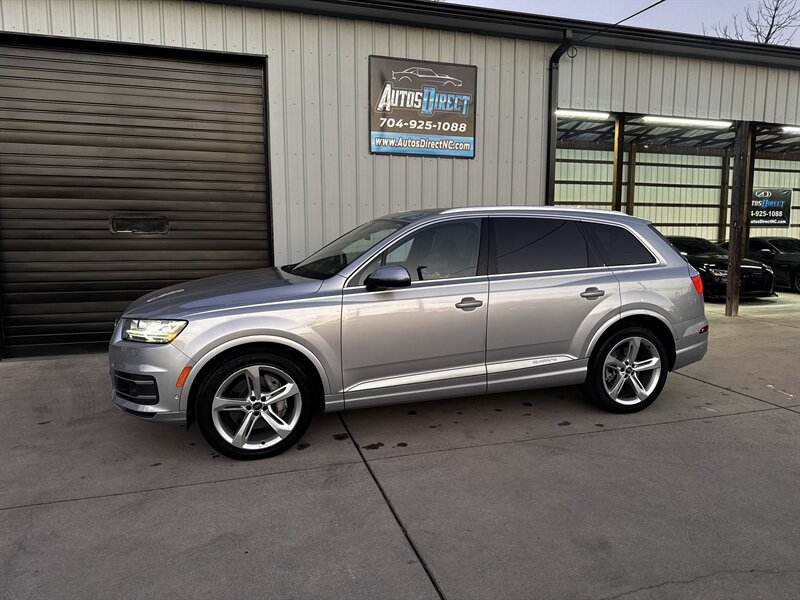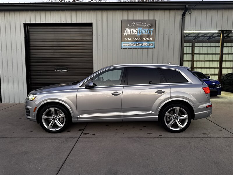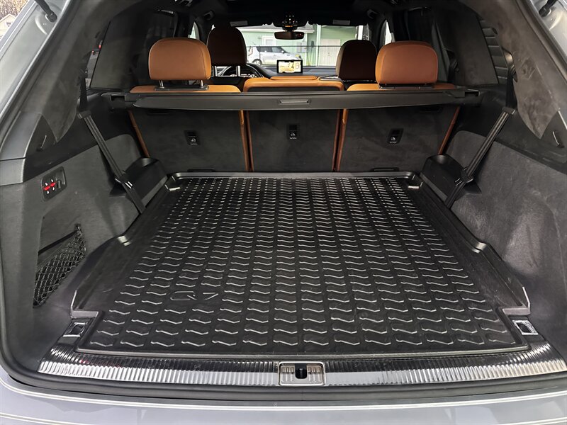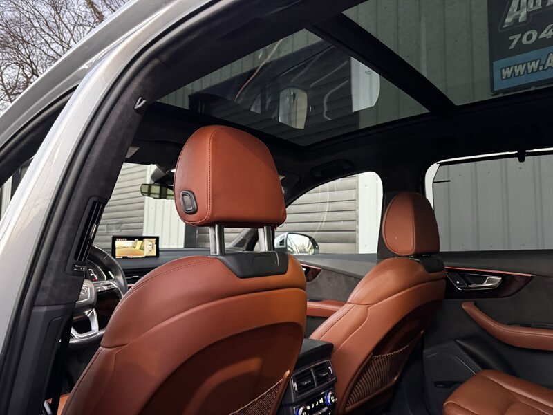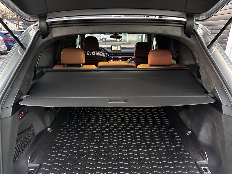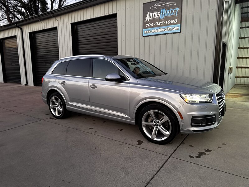 2019 Audi Q7 quattro Prestige 55 TFSI — powered by a 3.0L supercharged V6 producing 329 hp and 325 lb-ft, paired with Audi’s quattro all-wheel drive and smooth 8-speed automatic. Factory-equipped features include Audi MMI® Navigation plus with MMI touch and Virtual Cockpit, Bang & Olufsen premium audio, adaptive air suspension with drive mode select, LED Matrix headlights, panoramic sunroof, power tailgate, heated and ventilated front seats with power adjustments and memory, premium Murrillo Brown leather seating, three-row seating, multi-zone automatic climate control, and a full suite of advanced driver-assistance technologies. Finished in Silver exterior with Murrillo Brown interior, this Q7 delivers an EPA-rated 19 MPG city / 25 MPG highway, is in excellent overall condition, has a clean CARFAX, and has had one owner.
