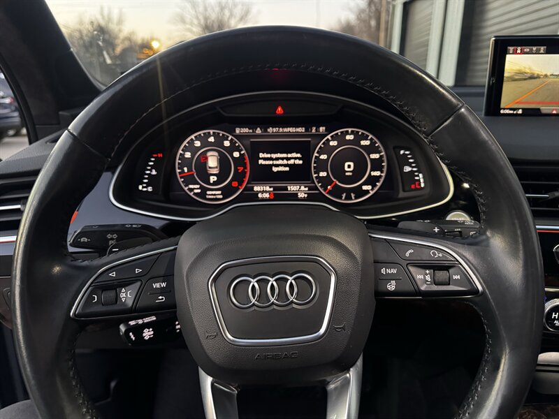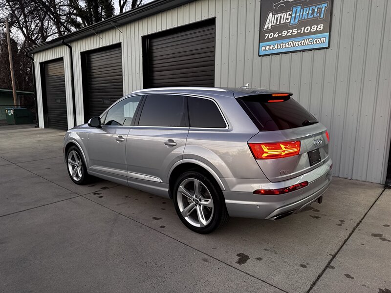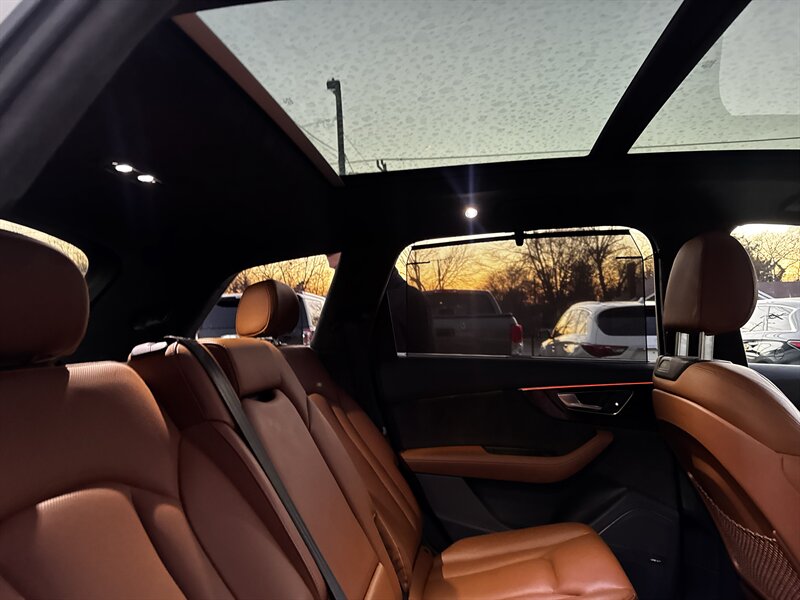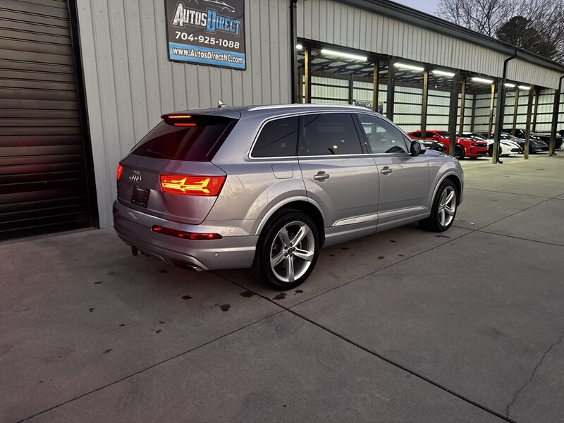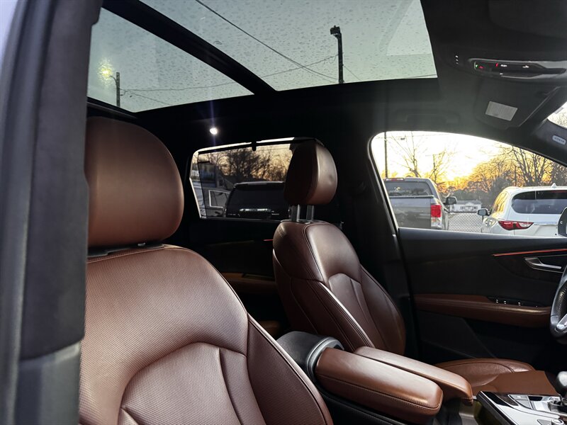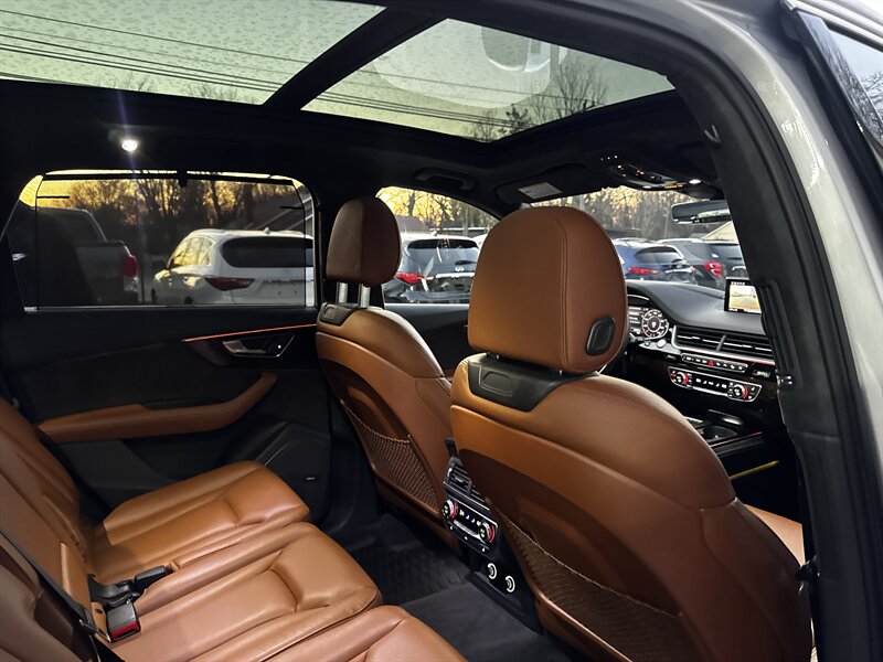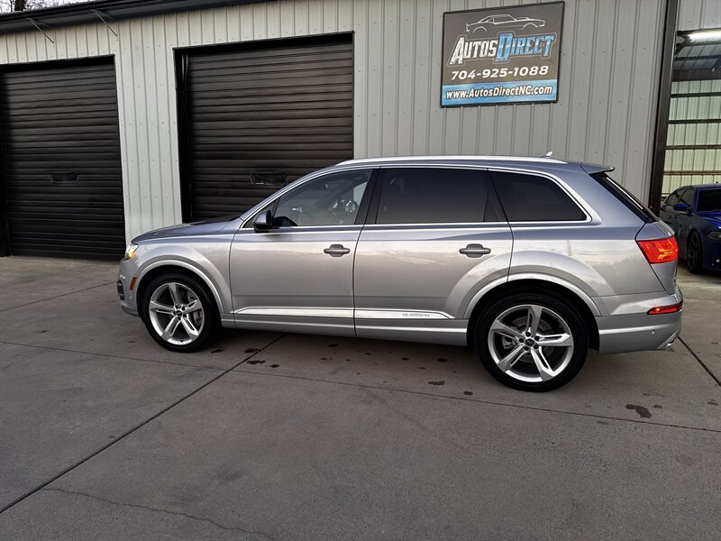 2019 Audi Q7 quattro Prestige 55 TFSI — powered by a 3.0L supercharged V6 producing 329 hp and 325 lb-ft, paired with Audi’s quattro all-wheel drive and smooth 8-speed automatic. Factory-equipped features include Audi MMI® Navigation plus with MMI touch and Virtual Cockpit, Bang & Olufsen premium audio, adaptive air suspension with drive mode select, LED Matrix headlights, panoramic sunroof, power tailgate, heated and ventilated front seats with power adjustments and memory, premium Murrillo Brown leather seating, three-row seating, multi-zone automatic climate control, and a full suite of advanced driver-assistance technologies. Finished in Silver exterior with Murrillo Brown interior, this Q7 delivers an EPA-rated 19 MPG city / 25 MPG highway, is in excellent overall condition, has a clean CARFAX, and has had one owner.