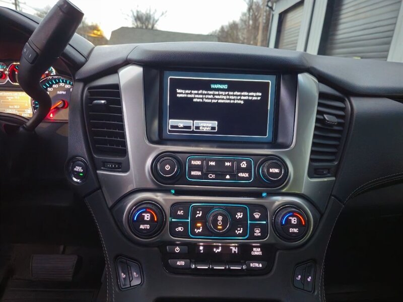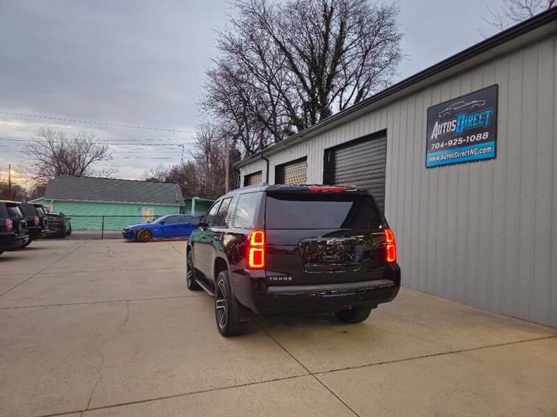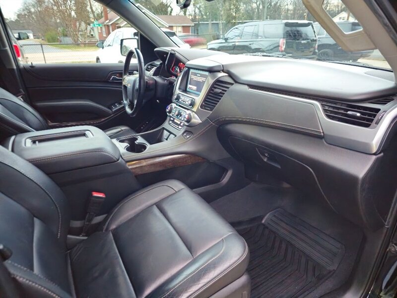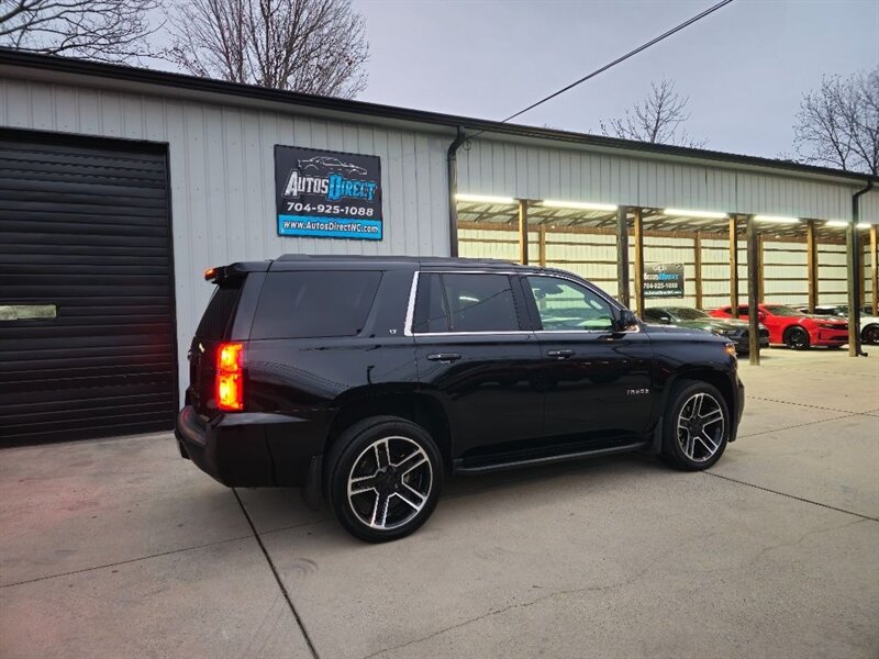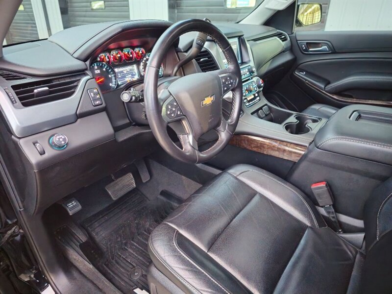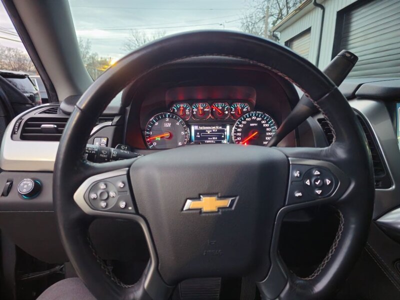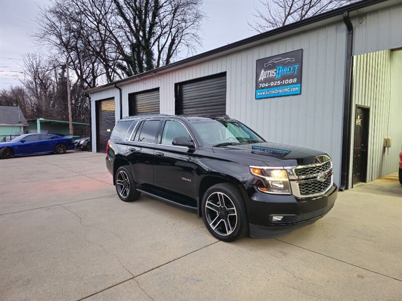 2019 Chevrolet Tahoe LT/ Texas Edition — Black exterior with Jet Black/Dark Ash interior. Powered by the EcoTec3 5.3L V8 (355 hp, 383 lb-ft), EPA-rated 15 MPG city / 22 MPG highway. Factory-standard features include Chevrolet Infotainment System with 8" touchscreen, Bose sound system, Apple CarPlay/Android Auto, Bluetooth and USB connectivity, AM/FM/SiriusXM radio, remote keyless entry, power windows and locks, cruise control, steering-wheel audio controls, automatic climate control, rearview camera, ABS, traction and stability control, and a full complement of airbags; seating for up to eight with versatile second- and third-row seating and generous cargo capacity. Excellent overall condition, one owner, clean CARFAX.