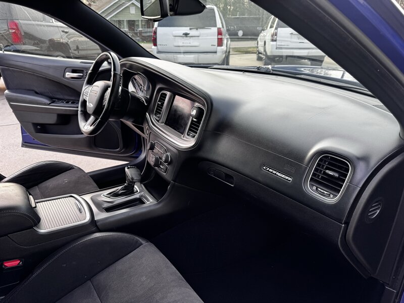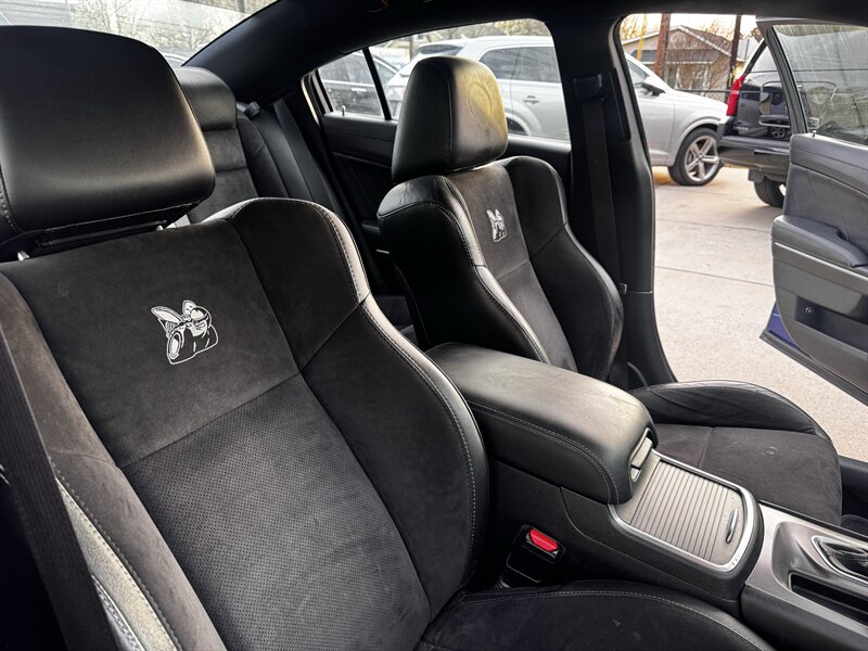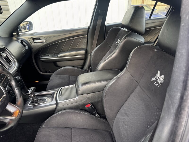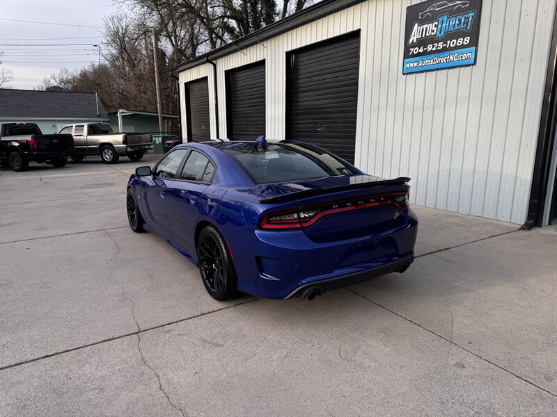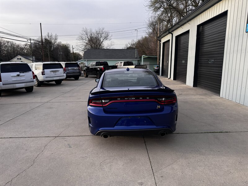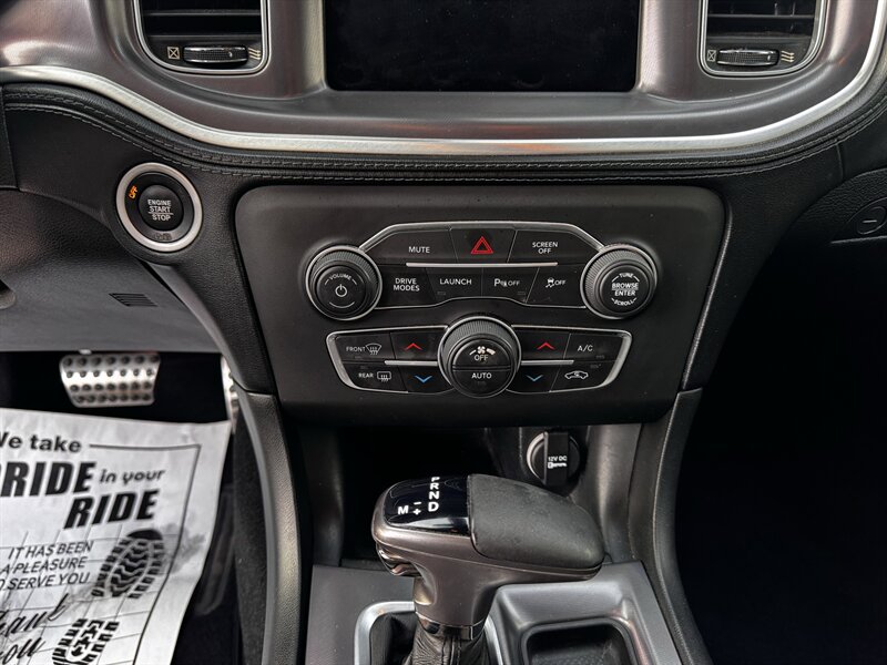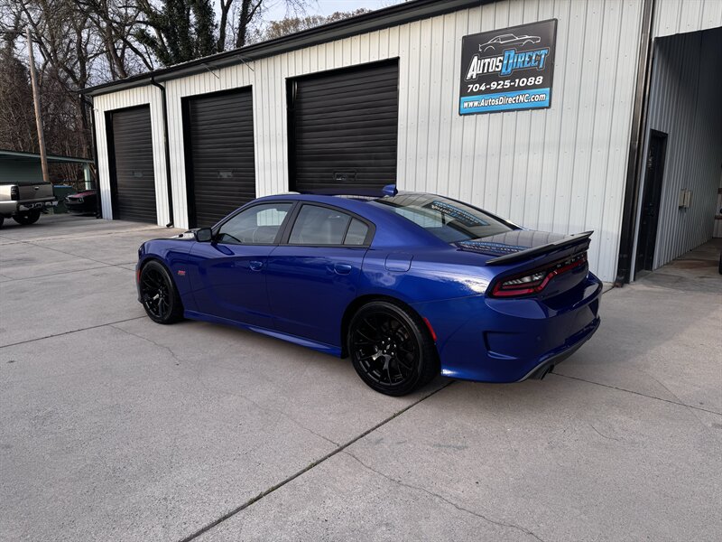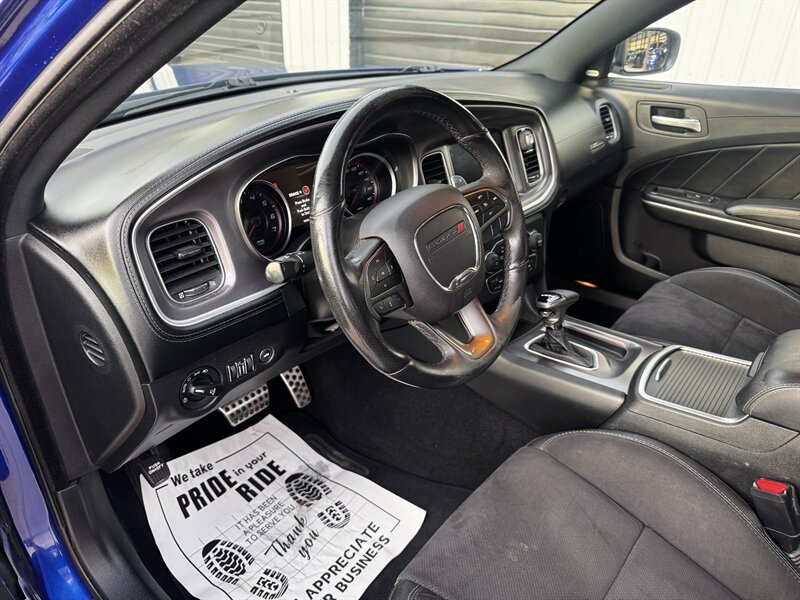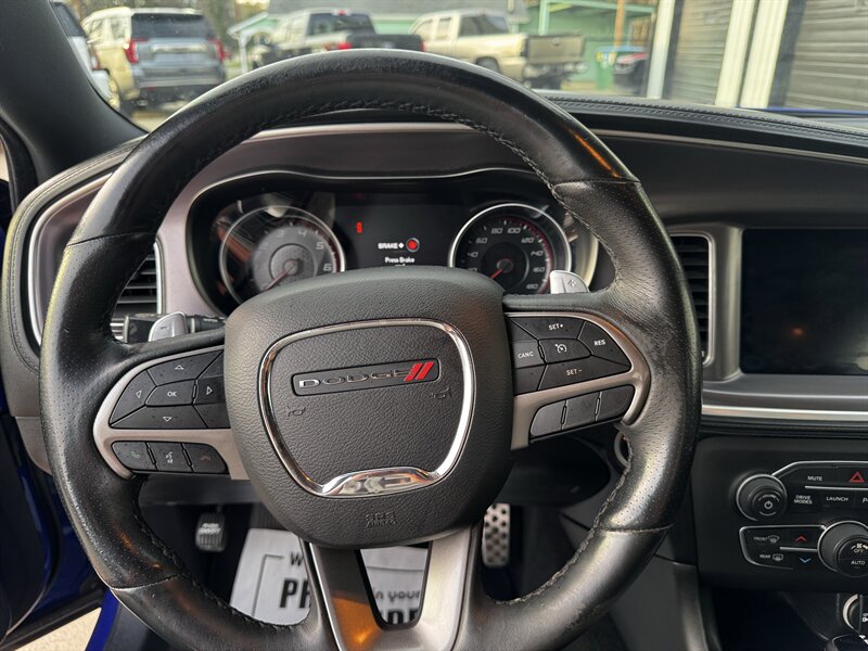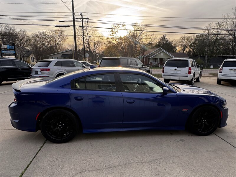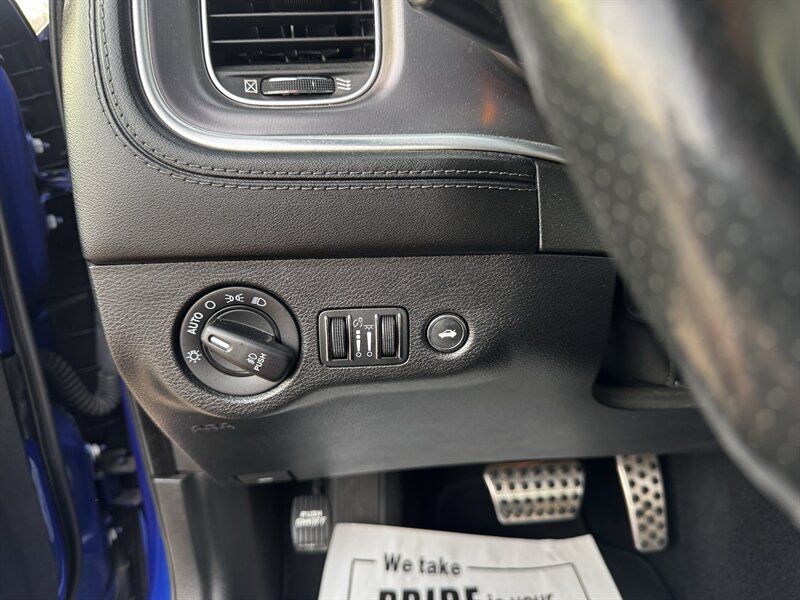 2019 Dodge Charger R/T Scat Pack — B5 Blue Pearl Coat exterior, Black interior with only one owner and a clean CarFax. HEMI 6.4L V8 producing 485 hp and 475 lb-ft, mated to an 8-speed automatic (RWD) — EPA 15 MPG city / 24 MPG highway. Factory-built for fury: performance-tuned suspension, factory Brembo performance brakes, limited-slip differential, performance exhaust with launch-control/line-lock capability, staggered 20-inch performance wheels and tires. Tech and convenience straight from the factory: Uconnect touchscreen with Apple CarPlay/Android Auto, dual-zone automatic climate control, push-button start/keyless entry, sport seats with leather accents, rearview camera and full stability/traction control suite. Excellent overall condition, Ready to dominate the road.