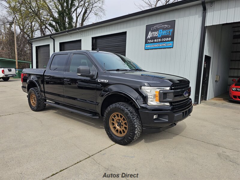 2019 Ford F-150 XLT — Agate Black/Magnetic exterior, Black interior with Gold Aftermarket Wheels & 33" Nitto Tires — powered by the brutal 3.5L EcoBoost twin-turbo V6 (375 hp, 470 lb-ft) mated to a 10-speed automatic. Factory features include rearview camera, SYNC infotainment with touchscreen/Bluetooth/USB, power windows and locks, remote keyless entry with door keypad, cruise control, factory wheels, automatic headlights, ABS with traction and stability control, full supplemental airbags and tow-ready hardware — everything straight from the factory to get the job done. 17 MPG city / 23 MPG highway, clean CARFAX, excellent overall condition — ready to dominate.