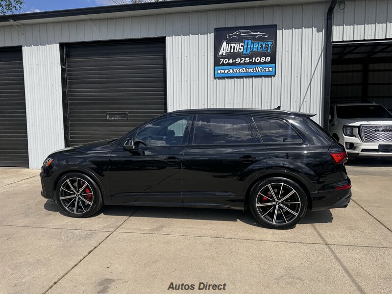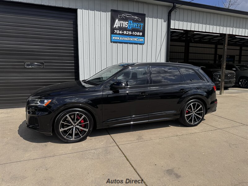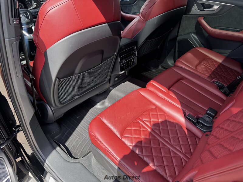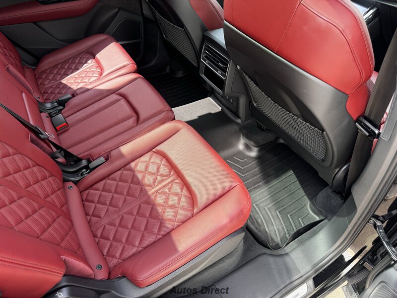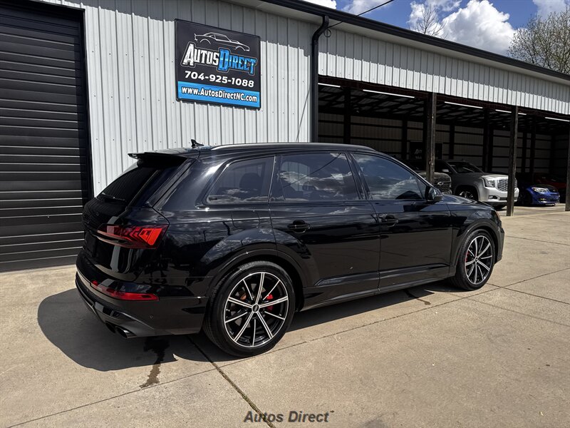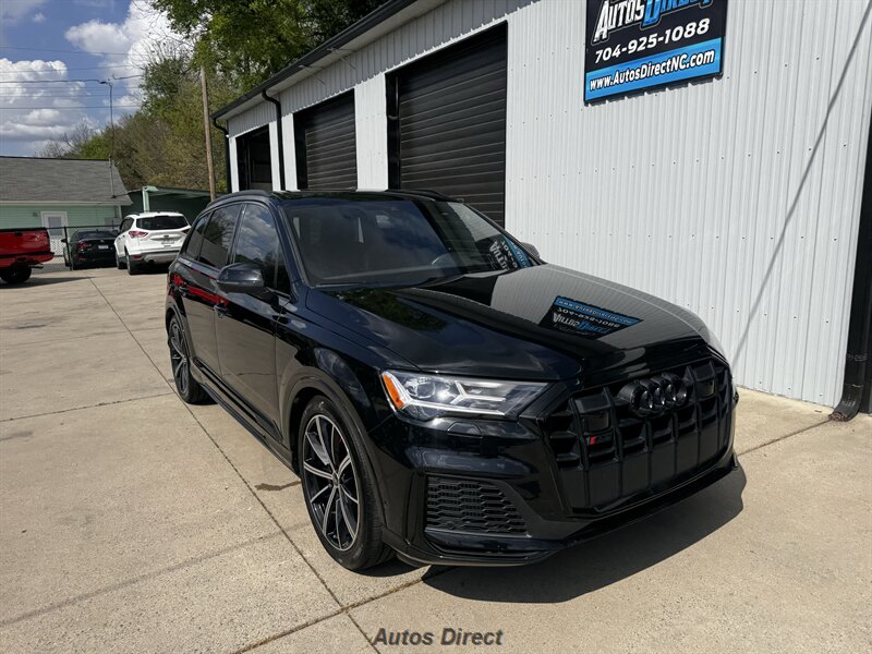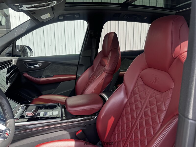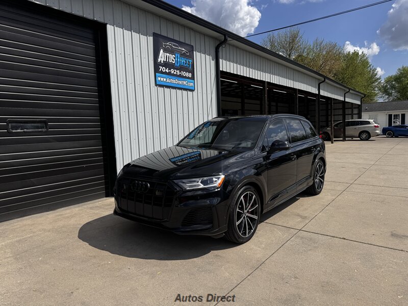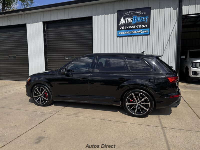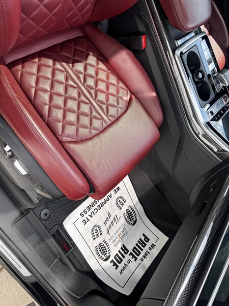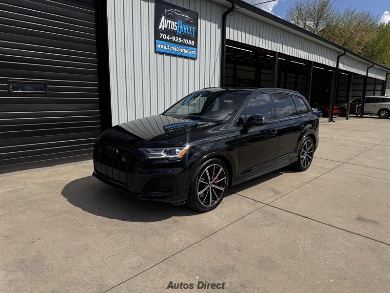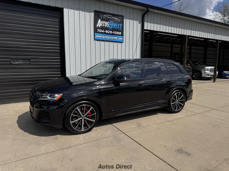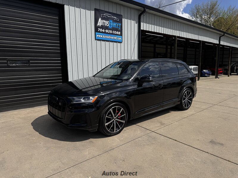 You want performance and presence? Here it is: a one-owner, clean-CARFAX 2022 Audi SQ7 4.0T quattro Prestige in Mythos Black Metallic with Arras Red interior and Anthracite stitching — excellent overall condition and ready to dominate. Powertrain and economy: 4.0L Twin-Turbo V8 delivering 500 hp and 568 lb-ft, paired to an 8-speed Tiptronic and quattro all-wheel drive — EPA-rated 15 MPG city / 21 MPG highway. Included packages: Black Optic, Luxury and S Sport. Options included: Bang & Olufsen Advanced 3D Sound, red painted brake calipers, Audi Guard cargo mat, black Audi rings/badges, Mythos Black paint and first aid kit. Factory features in detail: Audi MMI Navigation Plus with dual touch displays and Audi Virtual Cockpit digital driver display; head-up display; adaptive air suspension with adjustable dampers and selectable drive modes; LED Matrix headlights with adaptive high-beam; premium Valcona leather upholstery, power multi-contour front seats with memory, heated/ventilated front seats, 3-zone automatic climate control and panoramic sunroof; power liftgate, top-view camera and parking sensors, adaptive cruise with lane assist, Audi pre sense advanced safety suite, and third-row seating — everything you need to attack the road in comfort and confidence. Act fast — this SQ7 in this color combo won't last long!