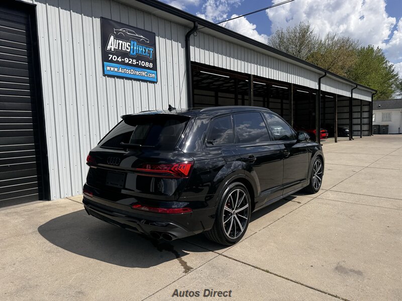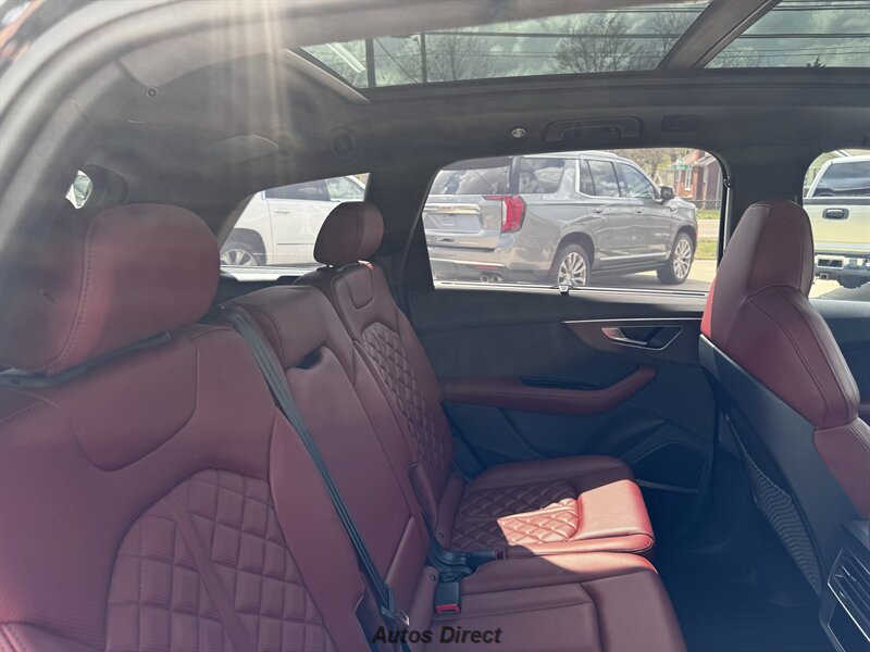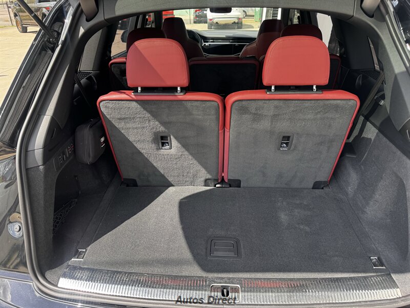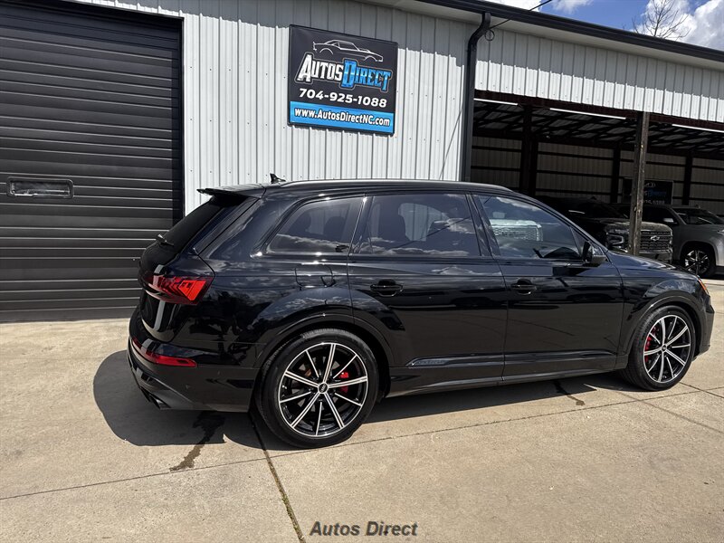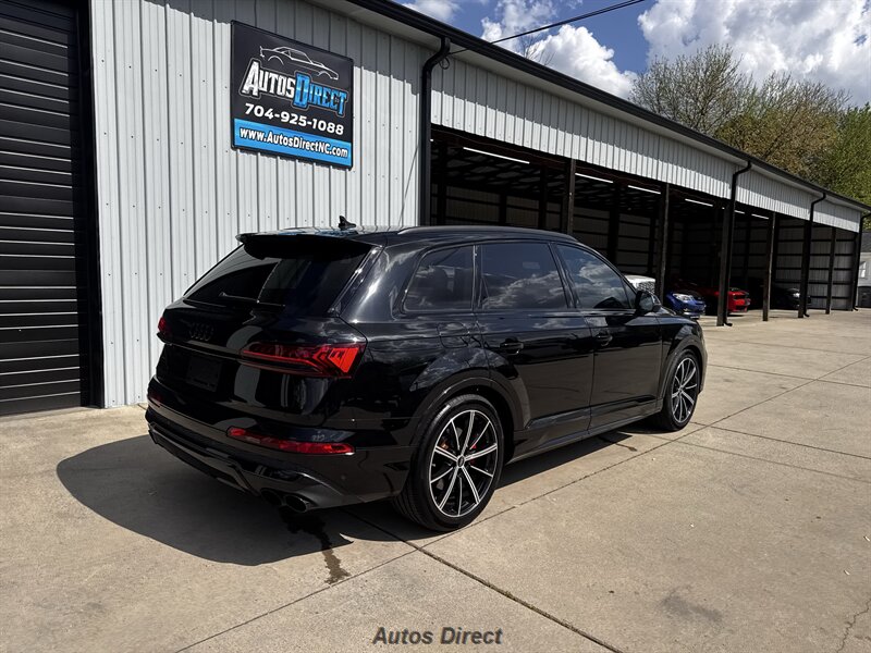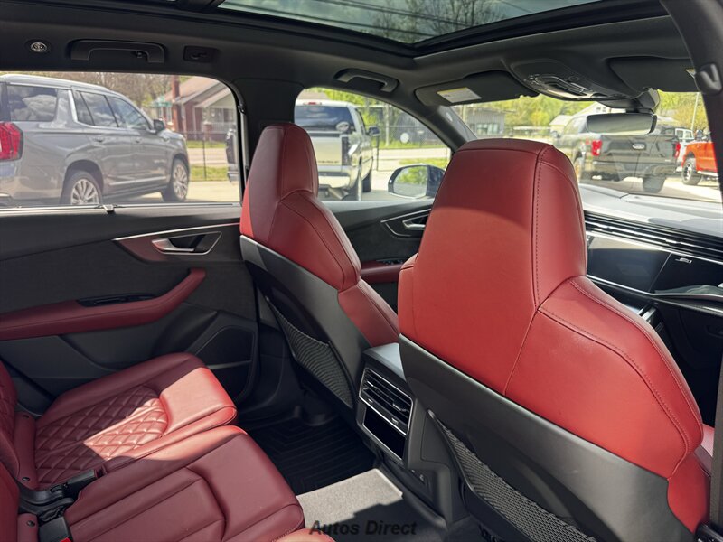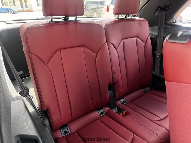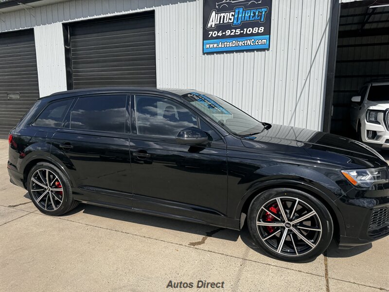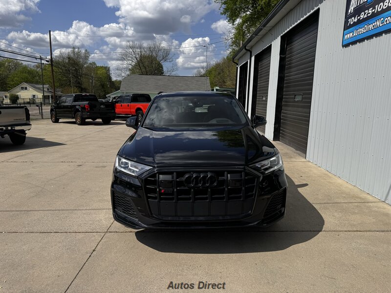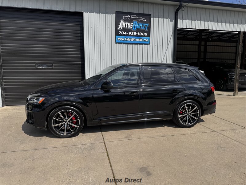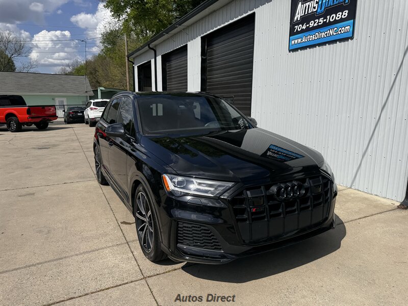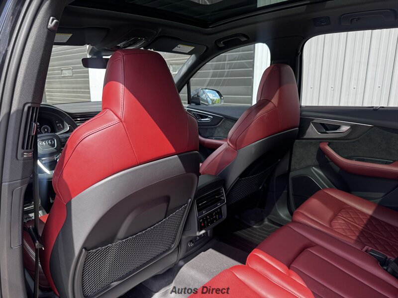 You want performance and presence? Here it is: a one-owner, clean-CARFAX 2022 Audi SQ7 4.0T quattro Prestige in Mythos Black Metallic with Arras Red interior and Anthracite stitching — excellent overall condition and ready to dominate. Powertrain and economy: 4.0L Twin-Turbo V8 delivering 500 hp and 568 lb-ft, paired to an 8-speed Tiptronic and quattro all-wheel drive — EPA-rated 15 MPG city / 21 MPG highway. Included packages: Black Optic, Luxury and S Sport. Options included: Bang & Olufsen Advanced 3D Sound, red painted brake calipers, Audi Guard cargo mat, black Audi rings/badges, Mythos Black paint and first aid kit. Factory features in detail: Audi MMI Navigation Plus with dual touch displays and Audi Virtual Cockpit digital driver display; head-up display; adaptive air suspension with adjustable dampers and selectable drive modes; LED Matrix headlights with adaptive high-beam; premium Valcona leather upholstery, power multi-contour front seats with memory, heated/ventilated front seats, 3-zone automatic climate control and panoramic sunroof; power liftgate, top-view camera and parking sensors, adaptive cruise with lane assist, Audi pre sense advanced safety suite, and third-row seating — everything you need to attack the road in comfort and confidence. Act fast — this SQ7 in this color combo won't last long!