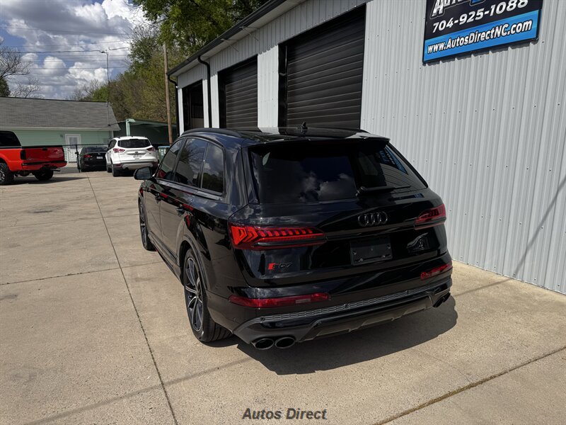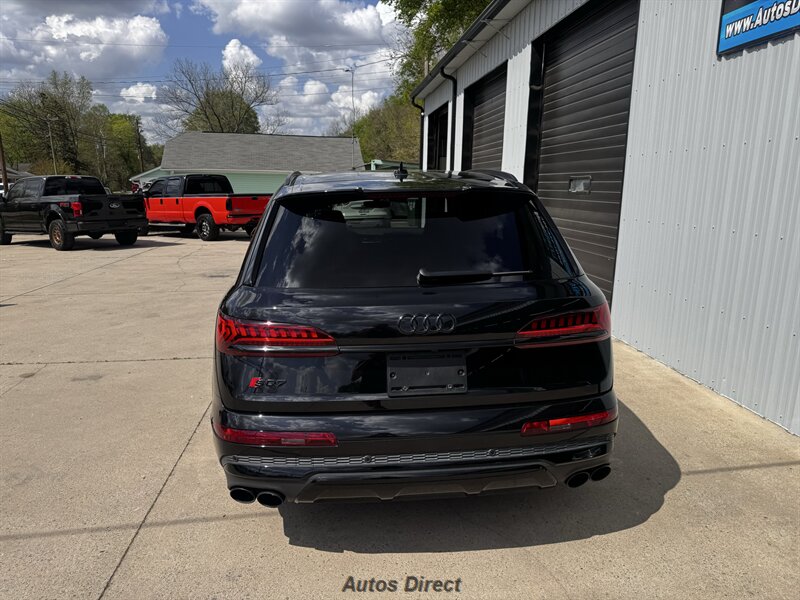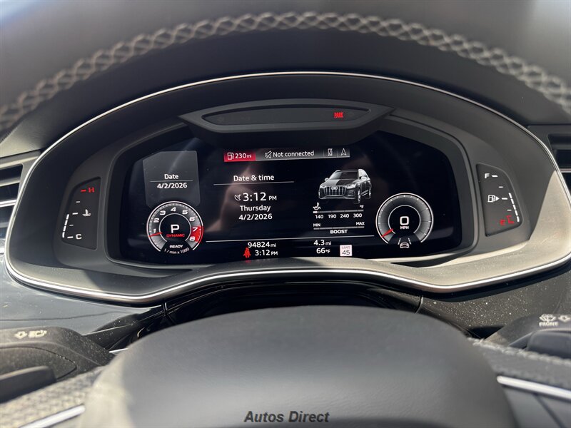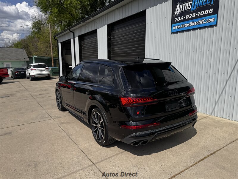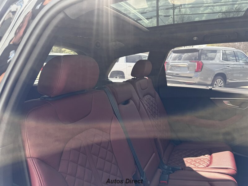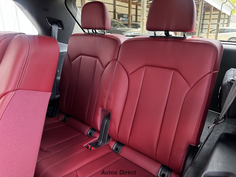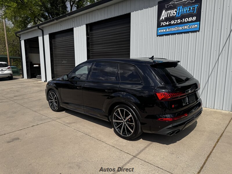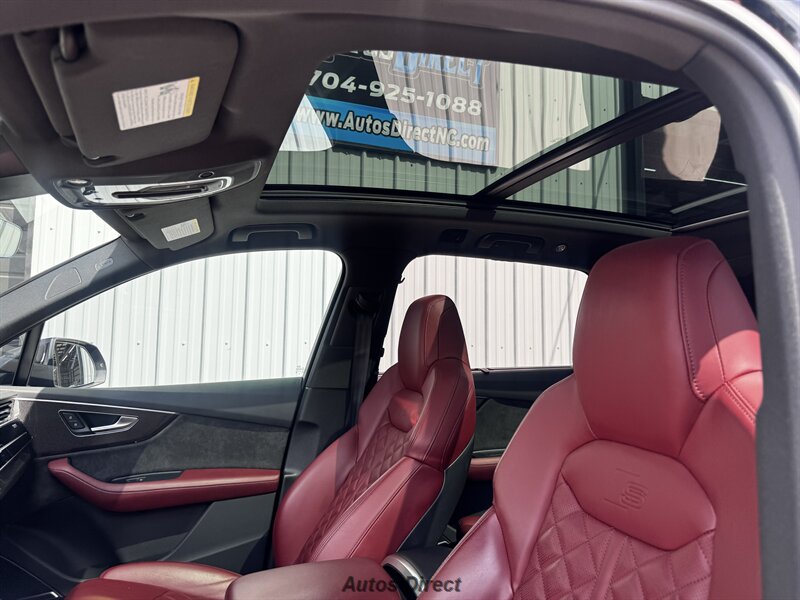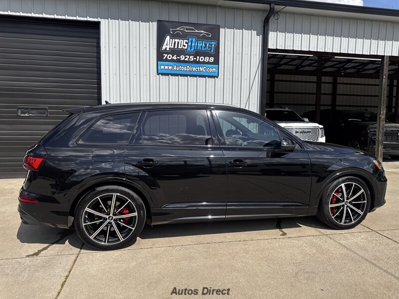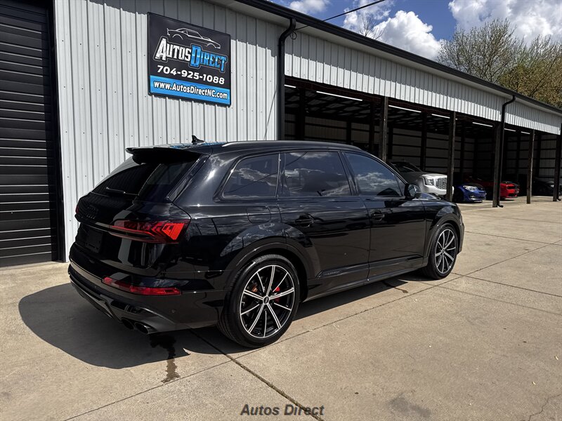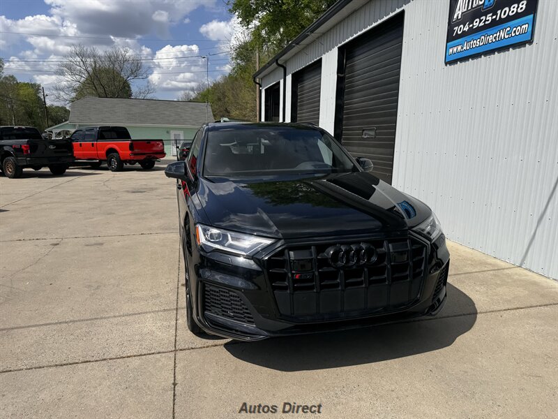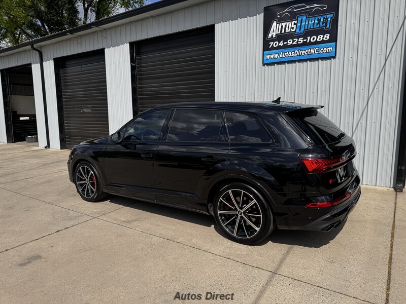You want performance and presence? Here it is: a one-owner, clean-CARFAX 2022 Audi SQ7 4.0T quattro Prestige in Mythos Black Metallic with Arras Red interior and Anthracite stitching — excellent overall condition and ready to dominate. Powertrain and economy: 4.0L Twin-Turbo V8 delivering 500 hp and 568 lb-ft, paired to an 8-speed Tiptronic and quattro all-wheel drive — EPA-rated 15 MPG city / 21 MPG highway. Included packages: Black Optic, Luxury and S Sport. Options included: Bang & Olufsen Advanced 3D Sound, red painted brake calipers, Audi Guard cargo mat, black Audi rings/badges, Mythos Black paint and first aid kit. Factory features in detail: Audi MMI Navigation Plus with dual touch displays and Audi Virtual Cockpit digital driver display; head-up display; adaptive air suspension with adjustable dampers and selectable drive modes; LED Matrix headlights with adaptive high-beam; premium Valcona leather upholstery, power multi-contour front seats with memory, heated/ventilated front seats, 3-zone automatic climate control and panoramic sunroof; power liftgate, top-view camera and parking sensors, adaptive cruise with lane assist, Audi pre sense advanced safety suite, and third-row seating — everything you need to attack the road in comfort and confidence. Act fast — this SQ7 in this color combo won't last long!