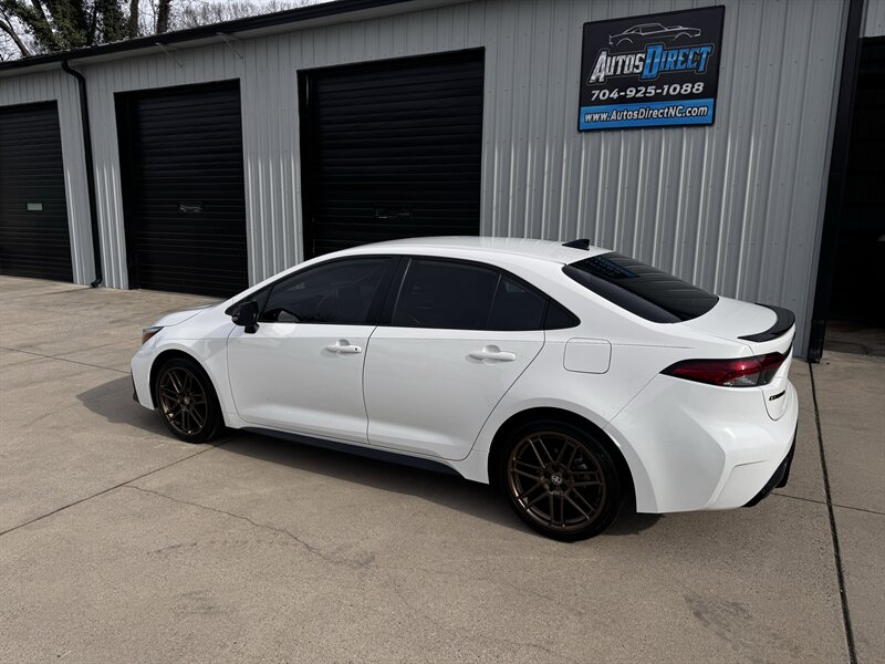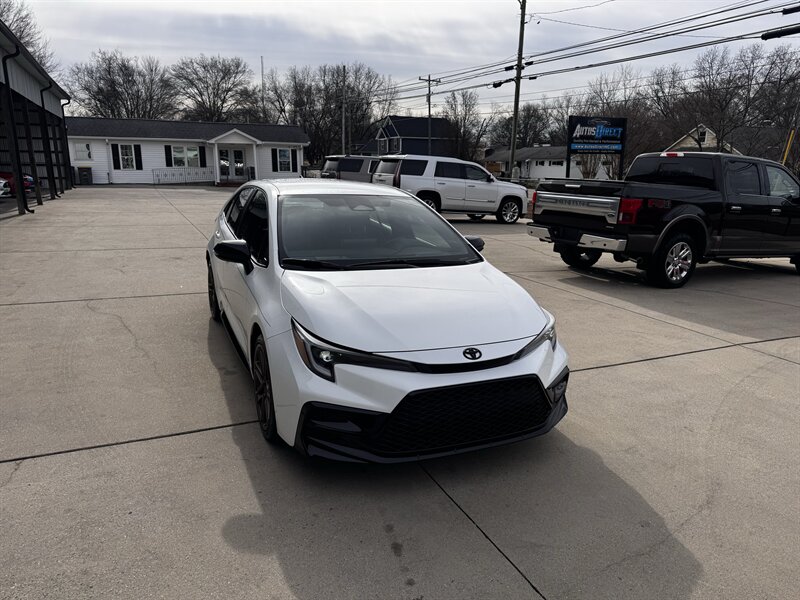 Own the road in this 2024 Toyota Corolla Nightshade — 2.0L I4 with 169 hp and 151 lb-ft, 32 MPG city / 41 MPG highway. Factory Nightshade trim brings menacing gloss-black exterior accents: blacked-out grille, mirror caps, badging and 18-inch gloss-black alloy wheels with LED projector headlights and LED taillights. Interior is Black/Red with sporty seats and red contrast stitching, steering-wheel audio and cruise controls, power windows/locks, and a driver multi-info display. Tech and safety are fully stocked with an 8-inch touchscreen infotainment system with Apple CarPlay/Android Auto, Bluetooth and USB ports, push-button start, and Toyota Safety Sense (pre-collision with pedestrian detection, full-range adaptive cruise, lane departure & lane tracing assist, road sign assist, automatic high beams). Excellent overall condition, one owner — ready to attack the streets.